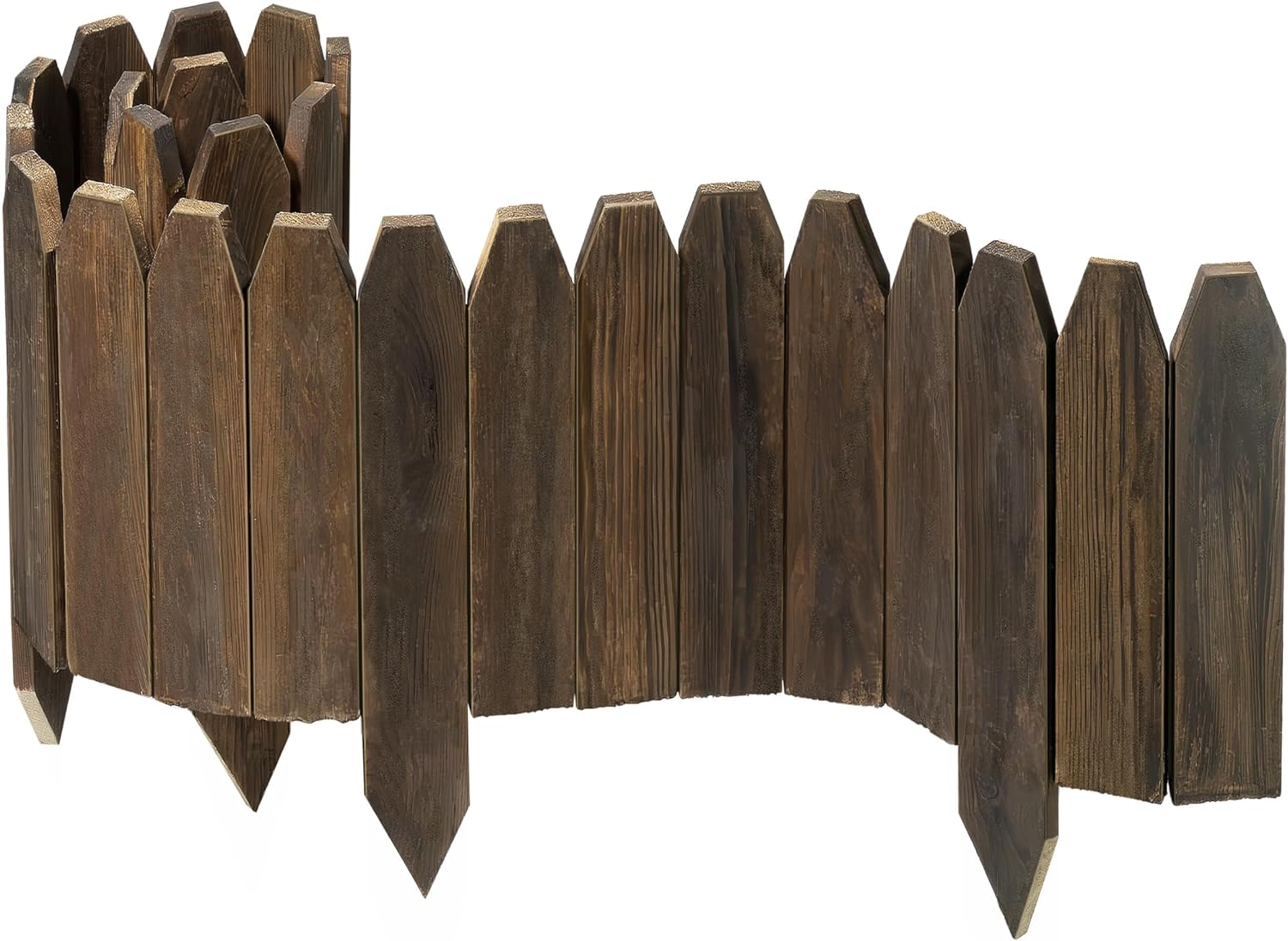 Wood Fence Border for Garden Beds – 9.8" H x 47" L Wooden Landscape Edging Panels, Rustic Decorative Outdoor Divider for Lawn, Path, and Yard Design