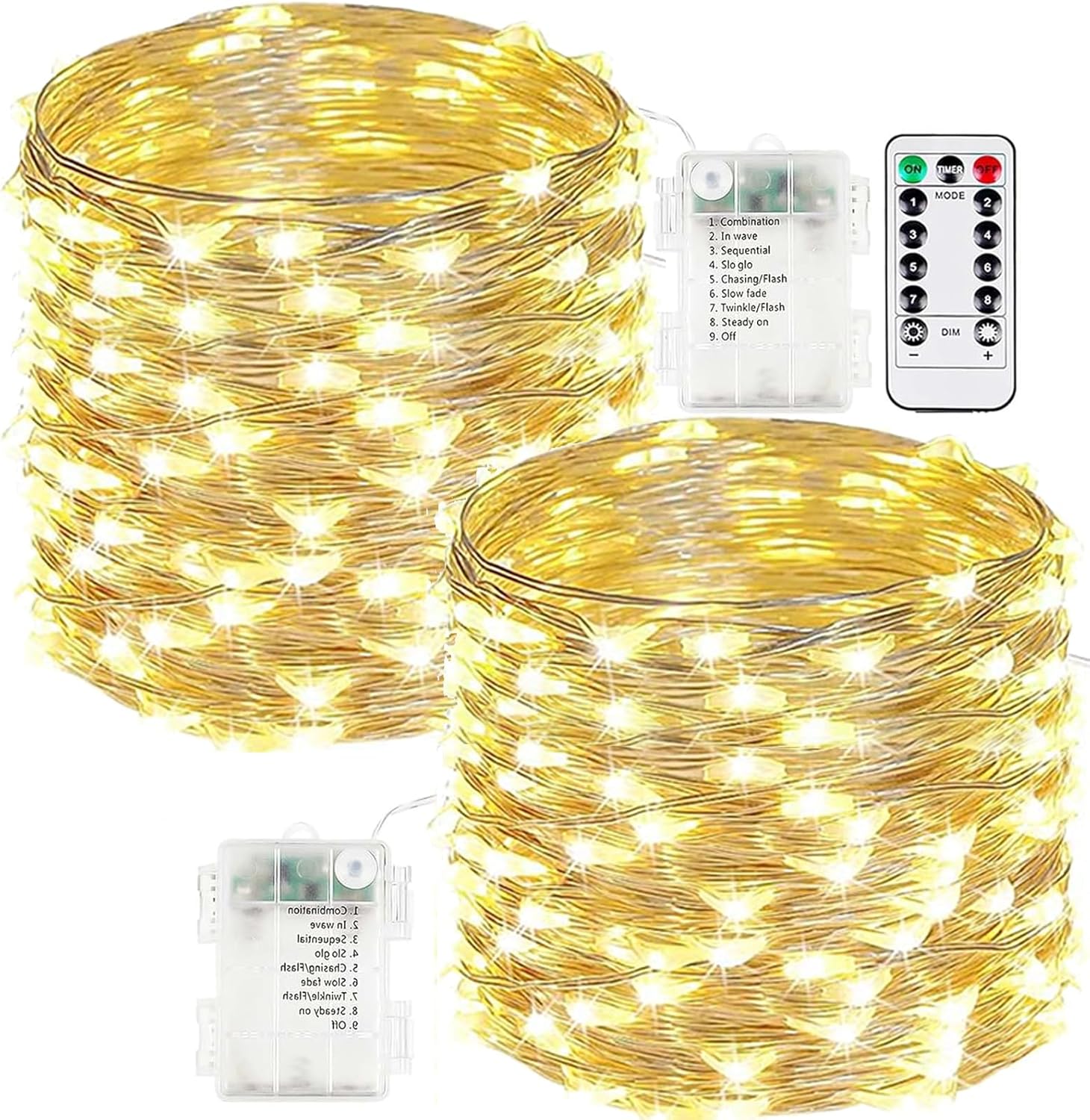 - Upgraded Christmas twinkle lights: Designed with ultra-bright LEDs and durable silver wire, these battery fairy lights are built to last and make an excellent choice for decorating bedrooms, centerpieces, balconies, and porches. Each set includes 2 strands of lights and 1 remotes, each 66ft long with 200 LEDs, powered by 3 AA batteries (not included)