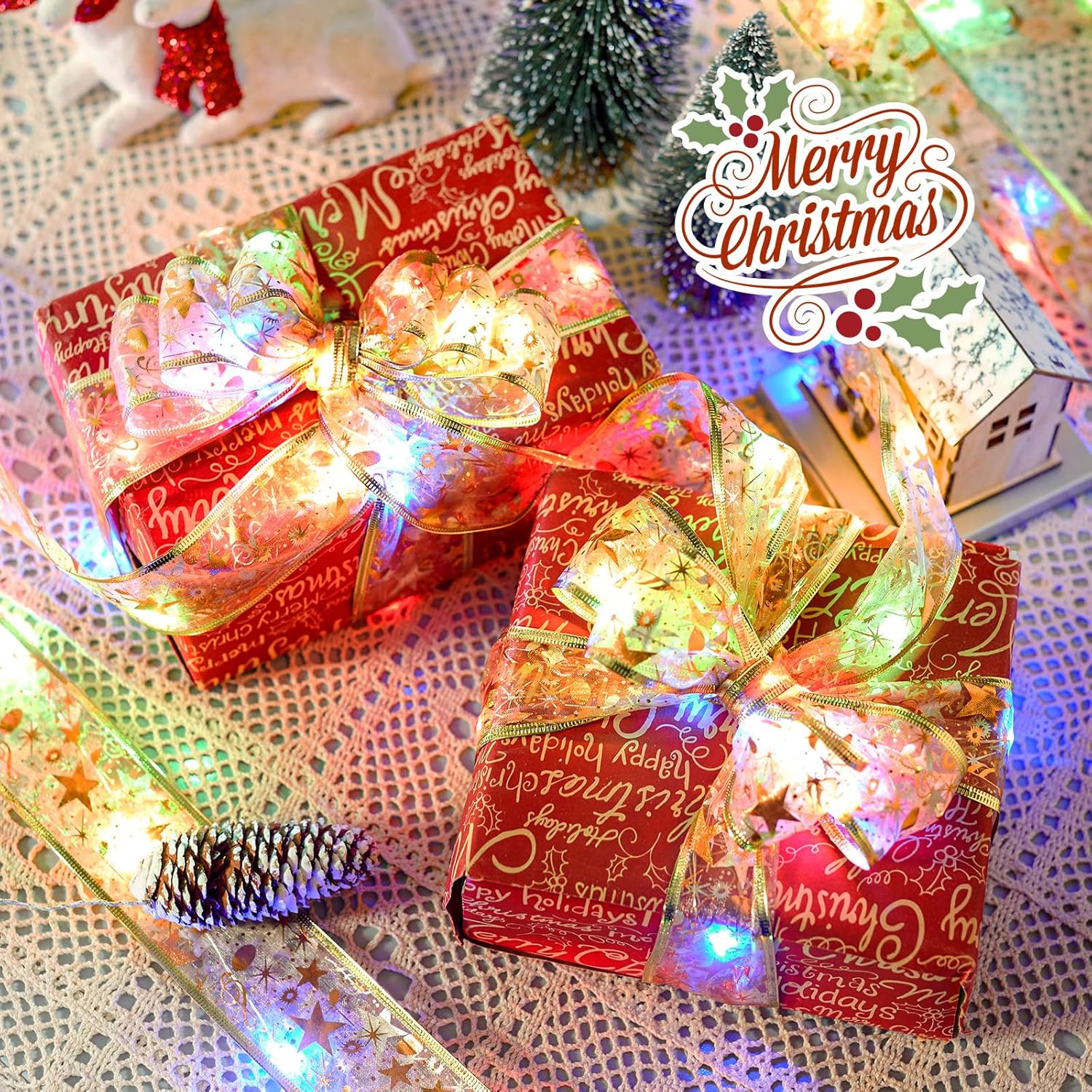 - 【 Easy to Shape】- The Christmas copper wire in the ribbon lights is made from high-quality copper wire and is bendable. You can DIY it into any shape you like, such as a bow, and it will hold its shape for various decoration purposes. You will find them extremely bright and beautiful, lighting up your Christmas trees, apartment railings, motorcycles, golf carts, trunks of trees, yards, porches, patios, etc.