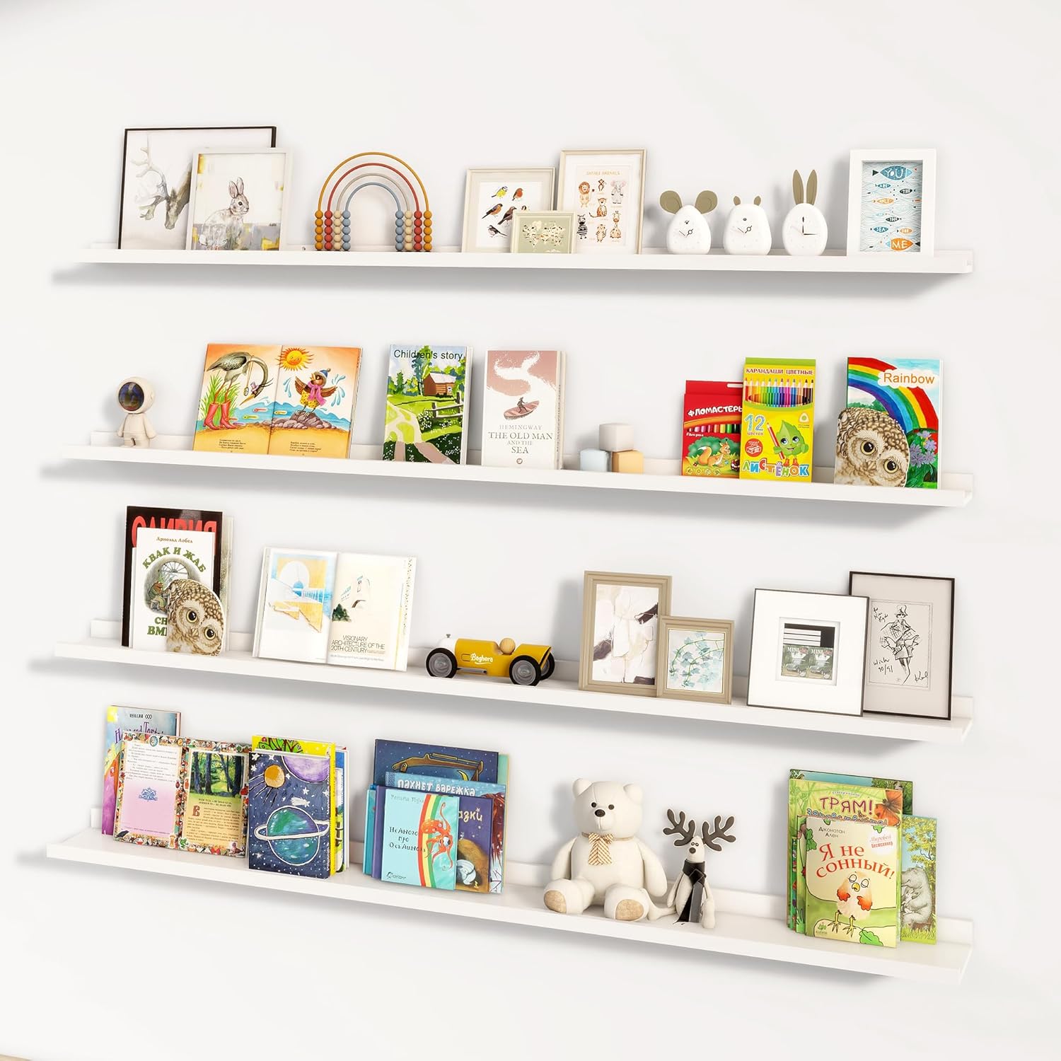 - Versatile and Multi-Functional: The FLYJOE long picture ledge shelves have various uses other than picture display. You can use them as a kid's bookshelf, to showcase collectible figures, or any other creative way that you can think of!