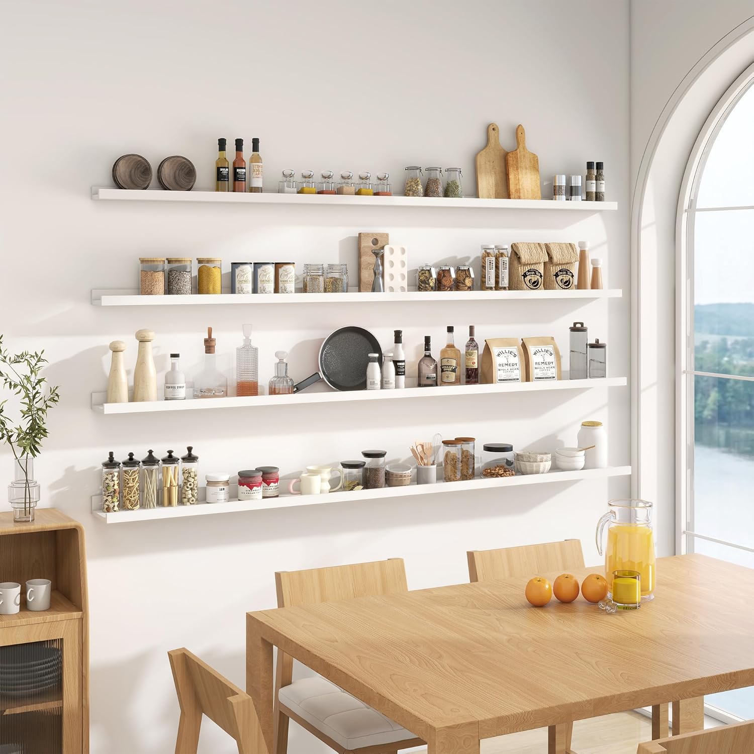 - Hassle-Free Installation: The FLYJOE long floating shelves come fully assembled and are easy to install. The set includes per-drilled holes and all necessary hardware, including a level, to make installation a breeze