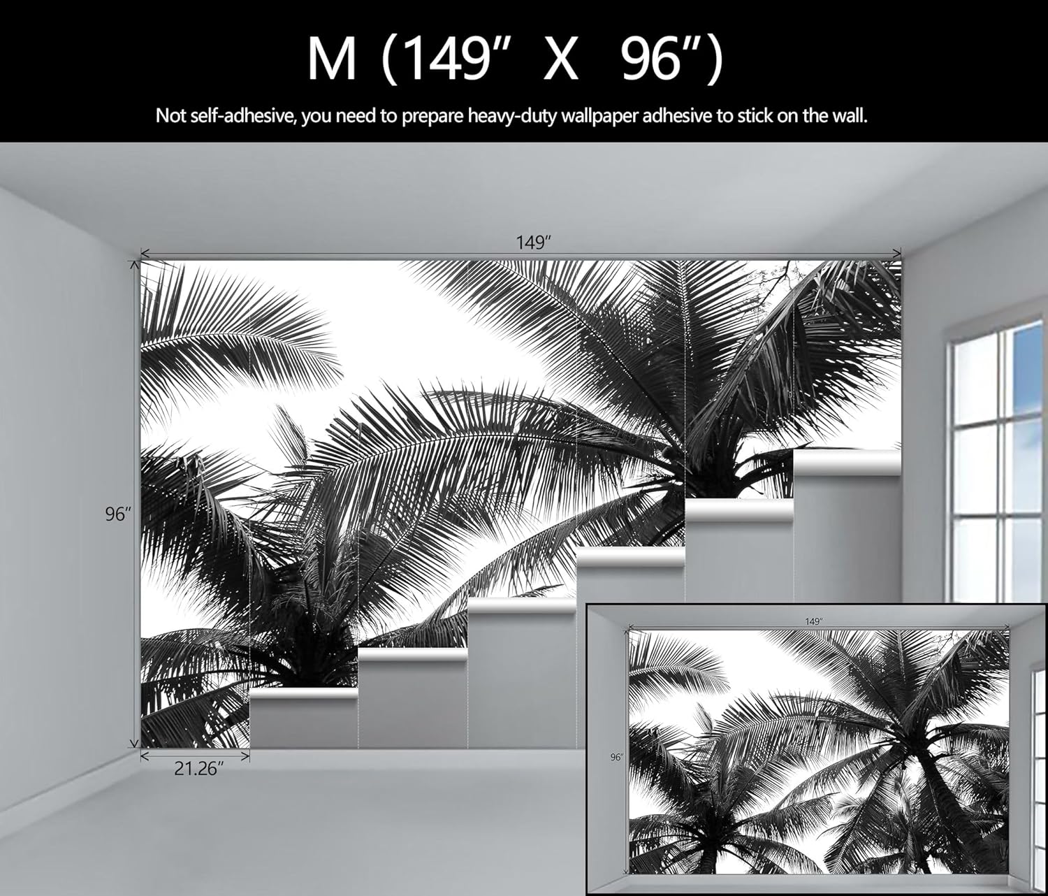 Black Palm Tree Wallpaper Bedroom Beautiful Tropical Plant Leaf Wall Mural Living Room (Not Peel and Stick)
