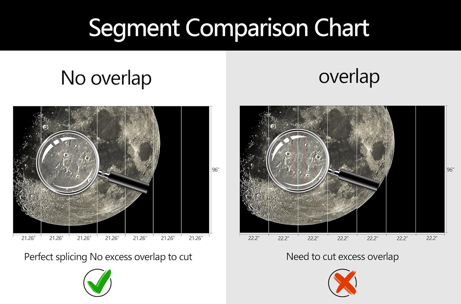 - Mural Size: The total size of this mural wallpaper is 149" x 96" / 378CM x 244CM (W x H), cut into 7 pieces, each measuring 21.26" x 96", for easy installation.
