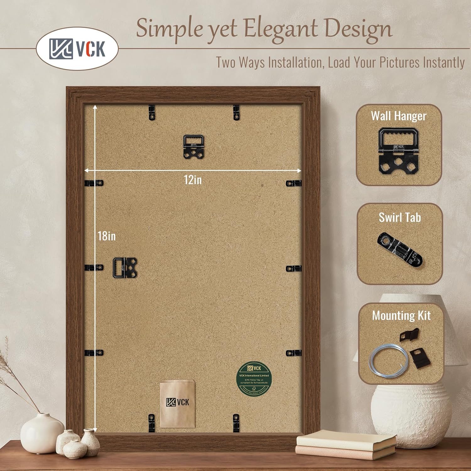 - Elegant Charm: VCK brown wood-grain picture frame. Drawing inspiration from Appalachian ancient forests, seamlessly blends modern minimalist design with natural aesthetics. This versatile addition enhances any decor, elevating the aesthetic value of your space