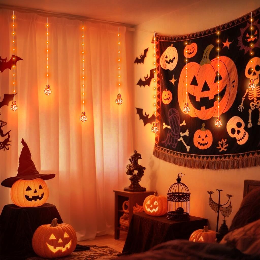 - [ 9.8 x 3.3ft ] Wishing Ball Curtain Lights: The edison look bulbs are filled with fairy-like orange LEDs, hanging on silver wire curtain lights, to create a soft glow and provide a joyful and hauting ambience for halloween party & events