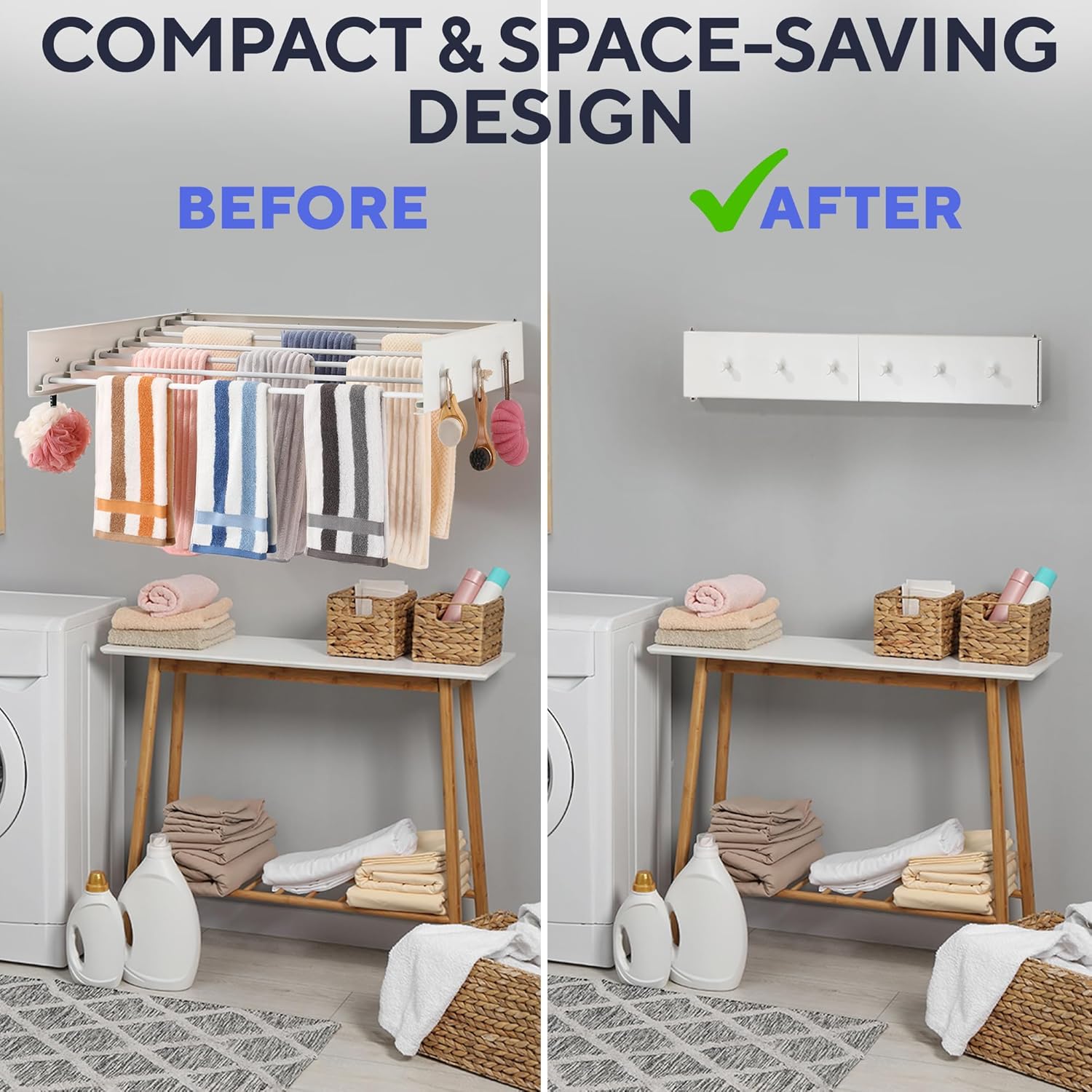 - Versatile for Any Space β Perfect for laundry rooms, bathrooms, balconies, or patios. Use this drying rack clothing wall mounted to dry towels, shirts, sweaters, clothing and more. Its sleek design complements any indoor or outdoor setting, making it a practical and elegant addition to your home!