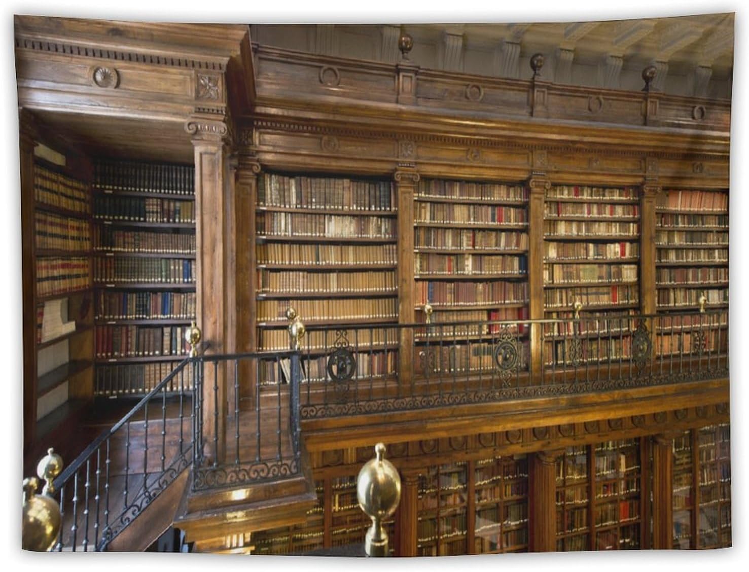 Kurtect Library Tapestry,Vintage Medieval Antique Bookshelf Bookcase Pattern Print Tapestries for Party Beach Picnic Blankets Tablecloths Living Room Wall Deocr, 30x40 in