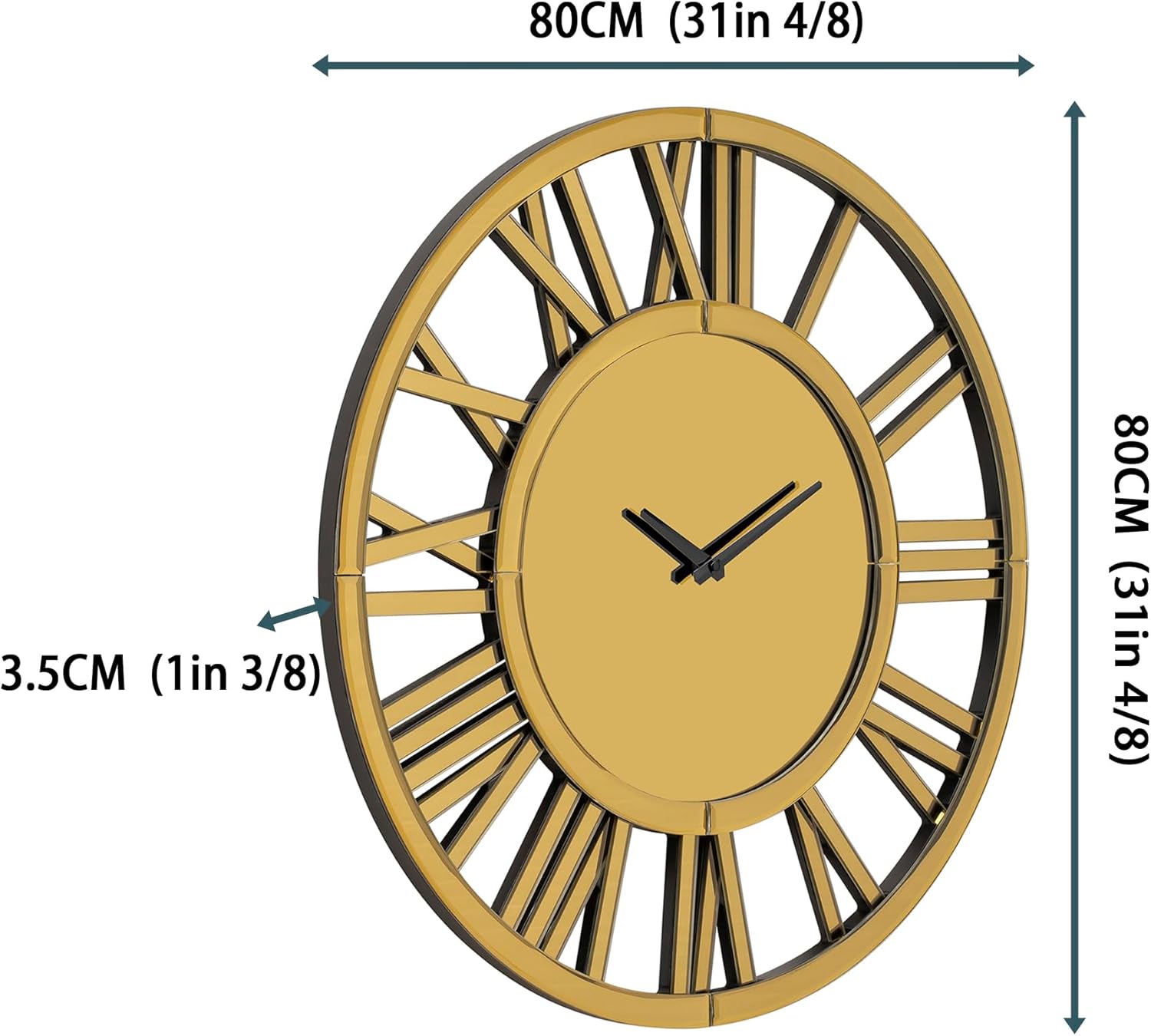 - 【Premium Materials】Constructed with a 4mm thick gold mirror and sturdy MDF backing, the wall clock is equipped with a silent sweep mechanism for accurate timekeeping. The one-piece movement cover safeguards the mechanism, while two robust D-ring hooks guarantee the stability of this large wall clock for enduring use.