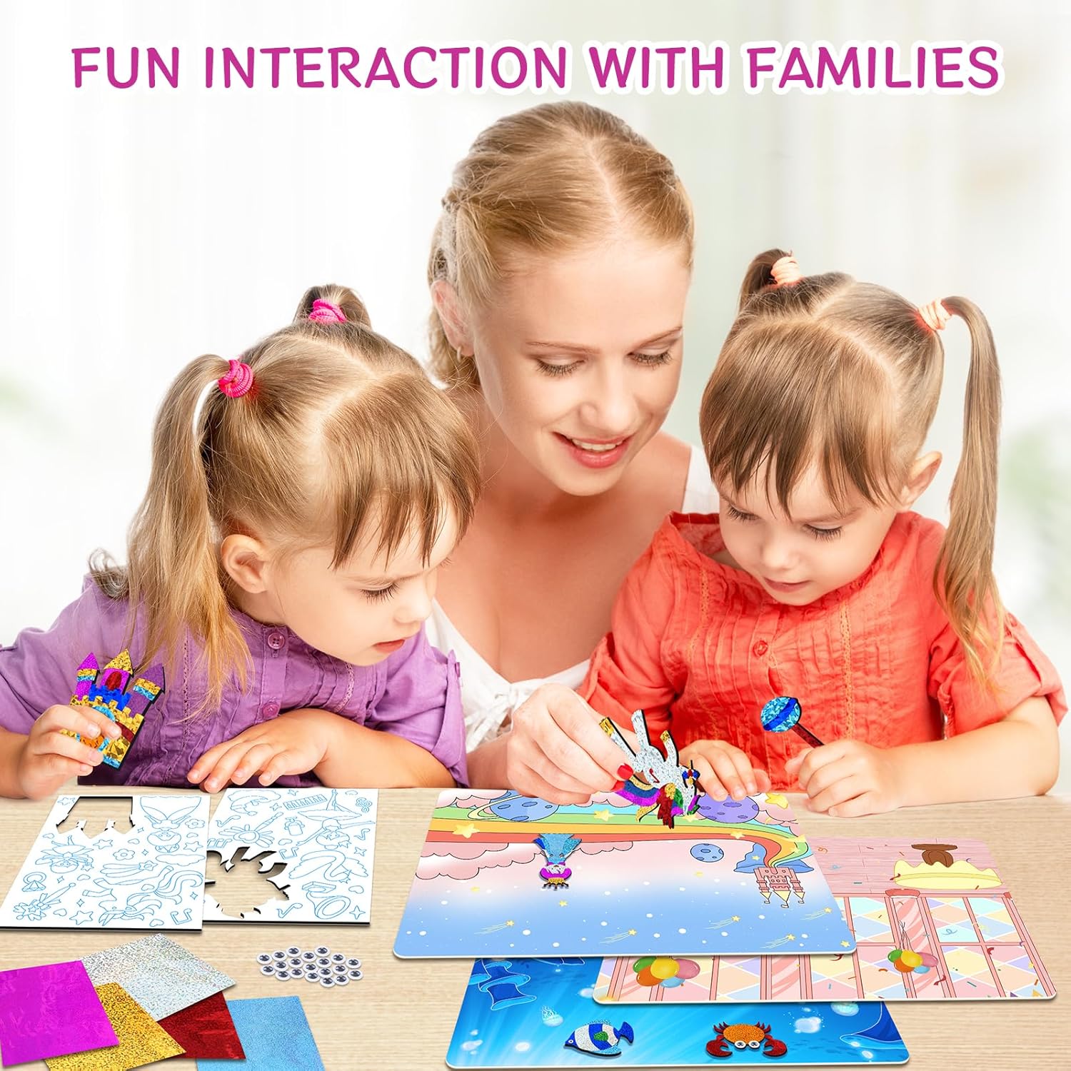 PERRYHOME Foil Arts and Crafts for Kids Ages 4-8 -DIY Unicorn & Princess Foil Foam Stickers Fun,Mess Free Kids Crafts,Creative Christmas Birthday Gifts Toys for 4 5 6 7 8 Year Old Girls