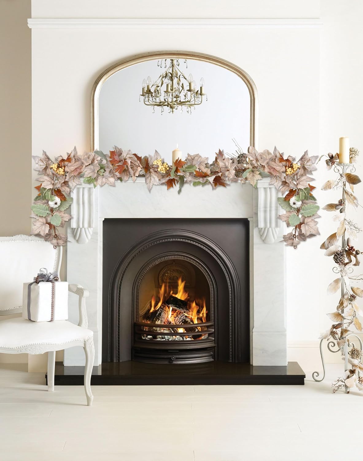 Lvydec 2 Pack Fall Maple Garland - 5.9ft/Piece Artificial Fall Foliage Garland Colorful Autumn Decor for Home Wedding Party (White&Green)