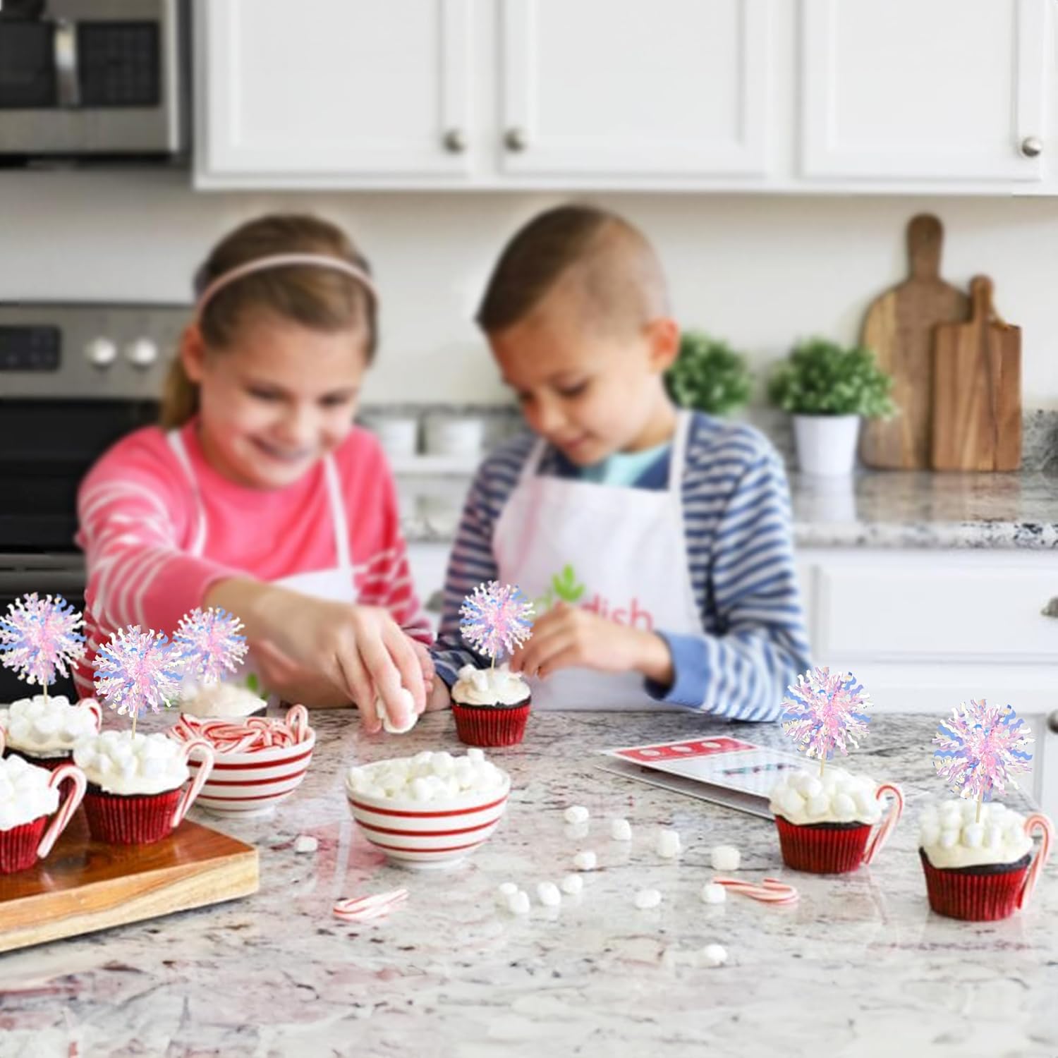 - 【NO Required】: 30Pcs Foil Firework cupcake toppers can put in the cake directly! These 30Pcs Foil Firework Cupcake toppers save your time and super easy to use. You can easily dress up your birthday theme cakes, yes! but don't stop there, put them into desserts, cookies, fruit pieces, appetizers, muffins and so much more!