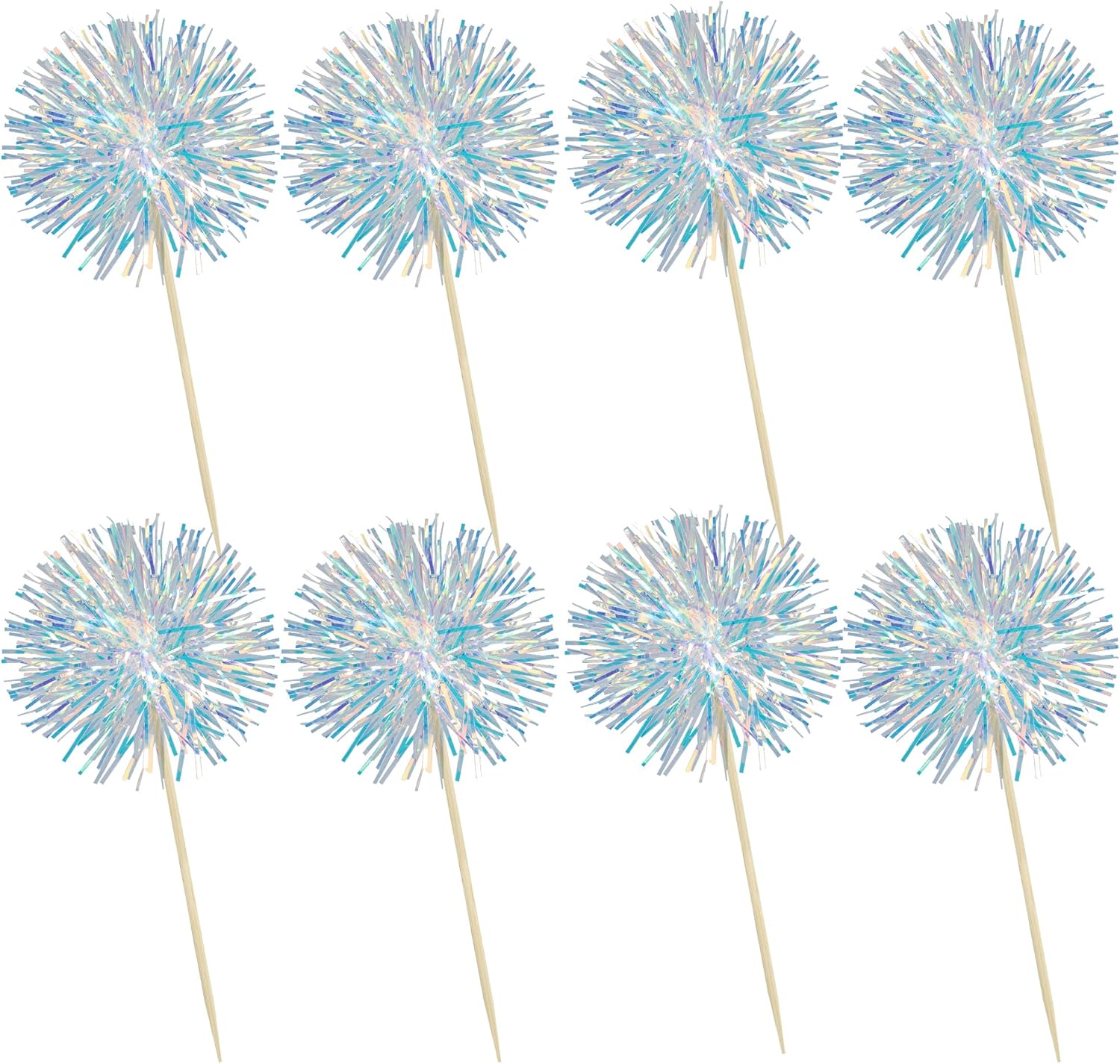 Ephlyn 30Pcs Foil Firework Cupcake Toppers Sparkle Tinsel Cupcake Picks Drink Stirrers Cocktail Food Fruit Toothpicks for Baby Shower Graduation Party Supplies White