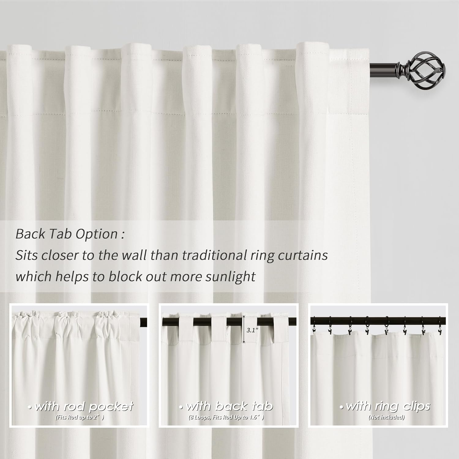 Room Darkening Curtains 96 Inches Long for Living Room Back Tab Ivory Blackout Curtains Neutral Aesthetic Linen Textured Thermal Insulated Black Out Curtain Light Blocking Drapes Off White 52x96