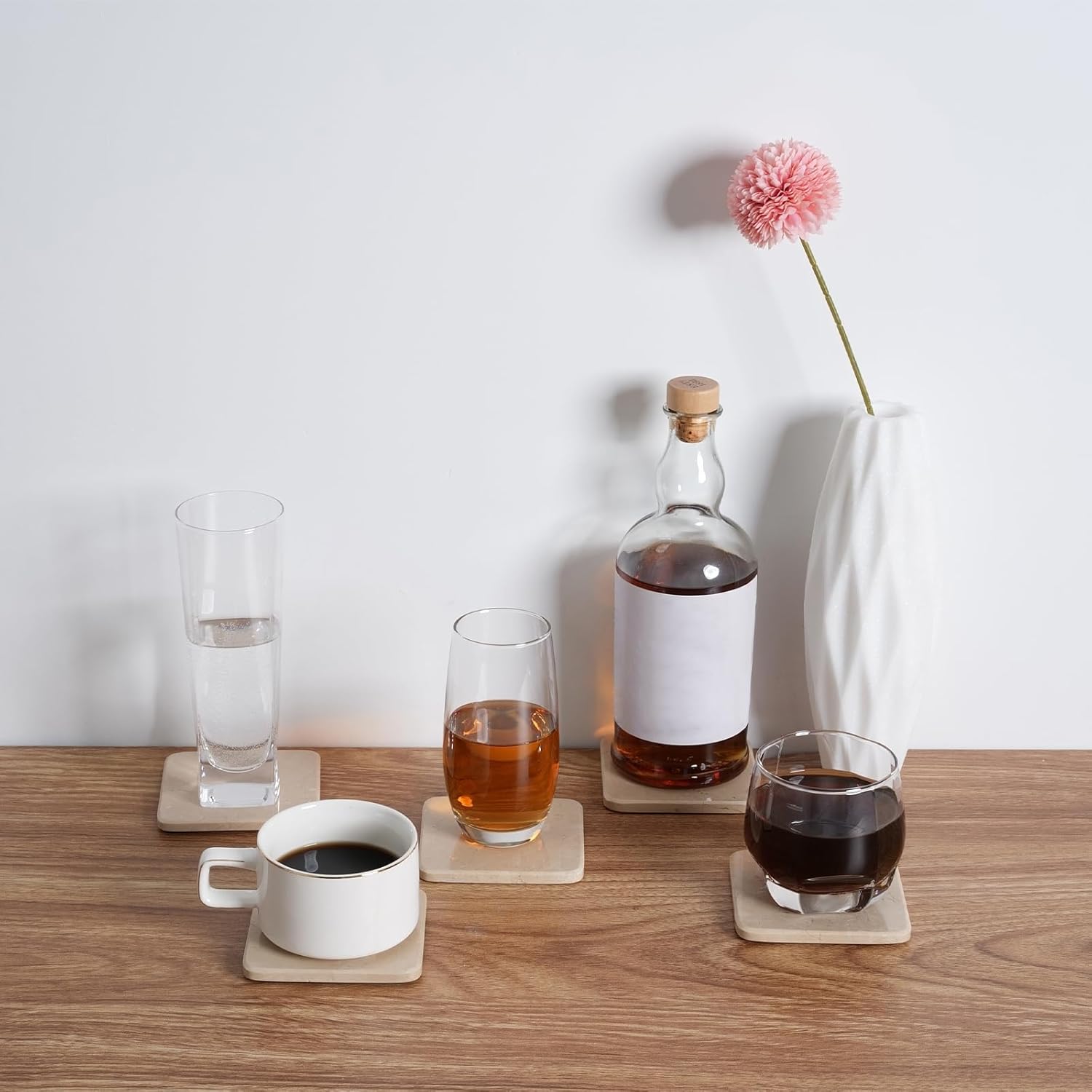 - Comes with Wood Storage Holder: Our marble coasters come with a sleek wooden holder for tidy storage and display. Just wipe clean with a damp cloth, no fuss, just understated elegance for your home or office