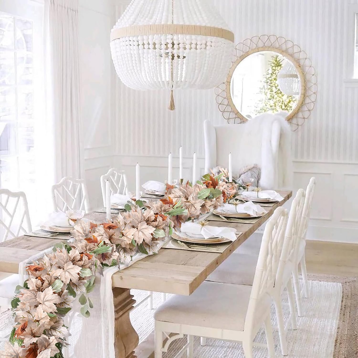 - 【Package】6 feet/piece artificial maple leaf garlands, The whtie, green and orange maple leaves make for a great blend of colors to warm up any room.