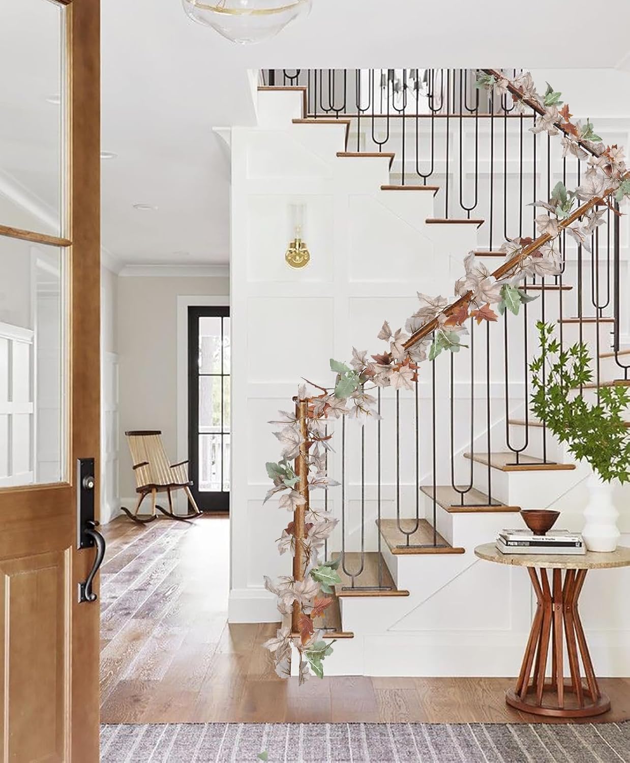 - 【Hanging Garland 】Maple leaf garland is perfect for Indoor, Outdoor, Autumn, Wedding, Door, Fireplace, Thanksgiving, Festival, and Dinner Party, as a kind of hanging plants, it can also decorate balcony, garden, wedding, table, swing stand, stair banisters, restaurants, office.