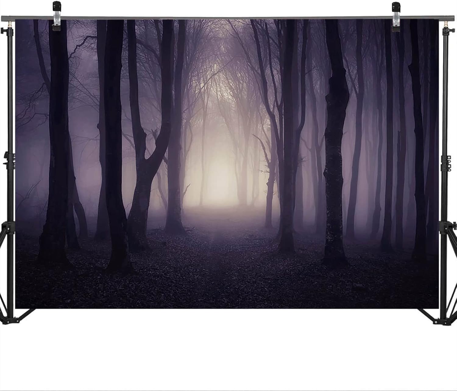 Mocsicka Halloween Photo Backdrop Misty Woods Dark Gloomy Forest Witch Wizard Party Background Halloween Night Ghost Photography Backdrops (8x6ft)