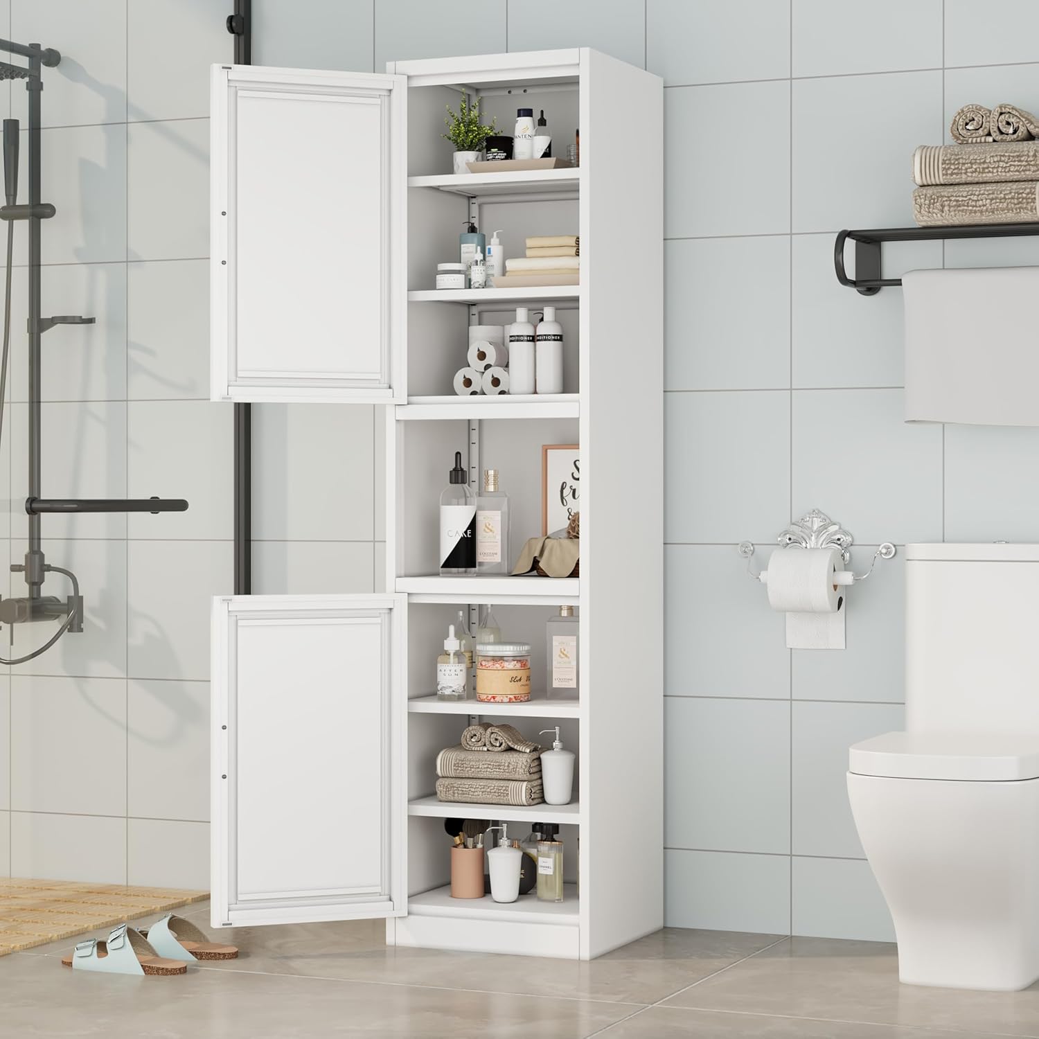 Tall Narrow Storage Cabinet 66.93" H Tall Bathroom Cabinets Metal Pantry Cabinet, 4 Adjustable Shelves for Kitchen, Home Office, Living Room, Dinning Room (16 inches Wide White)