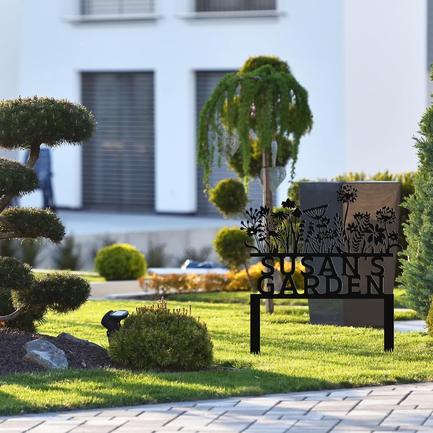 Custom Flowers Metal Garden Decor, Sign for Flower Beds, Personalized Flowers Garden Sign with Stakes, Metal Yard Art, Gift for Grandmother, Patio Decor, Farmhouse Decorations, Mom Gift