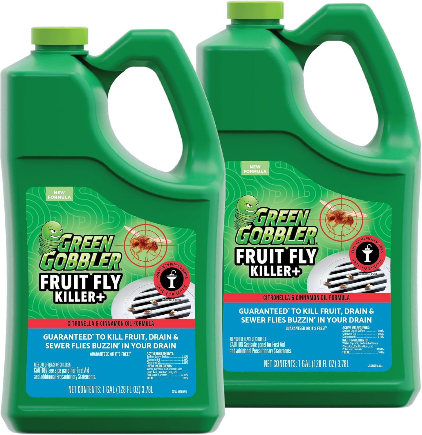 Green Gobbler Fruit Fly Killer+ - Kills Fruit Flies, Drain Flies & Sewer Flies, Gel Treatment For Use in Sinks & Pipes - Safe for Septic Systems (2 PACK)