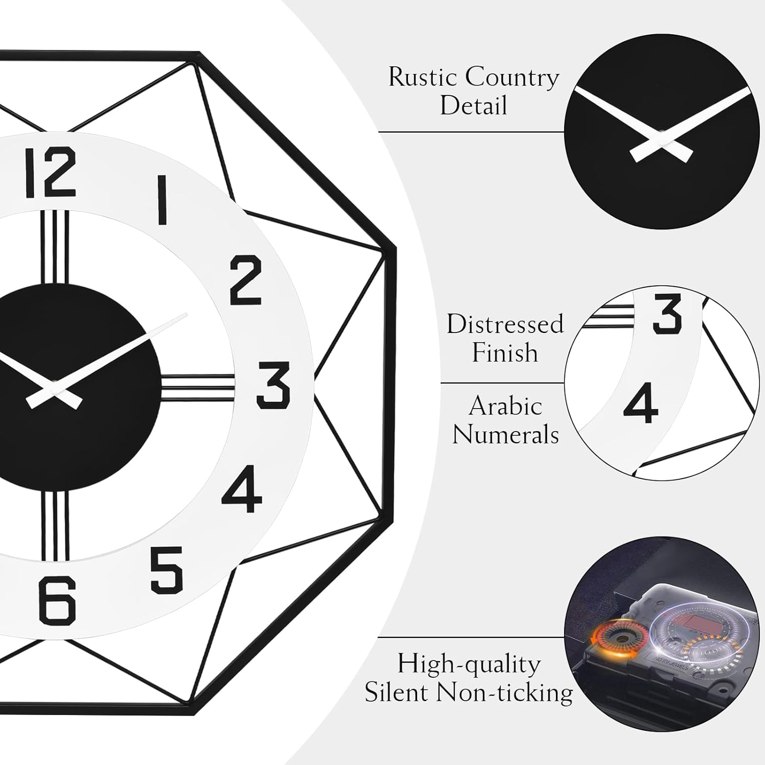 Modern Look Wall Clock – Large Decorative Silent Clock for Living Room Decor, 24 Inch Geometric Design with Numbers Huge Clock