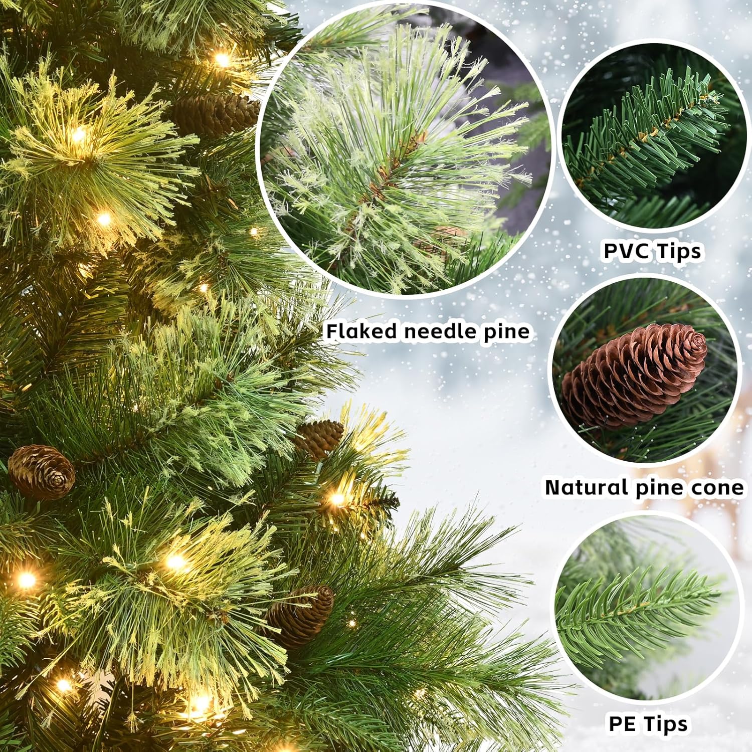 - Pre-Lit Christmas tree:This artificial pine tree is prelit with 200 warm white lights for a festive look. Its branches are sturdy enough to hold all your favorite ornaments, allowing you to customize its appearance to your liking. At the top of the Xmas tree, you can hang shining stars to add festive atmosphere.