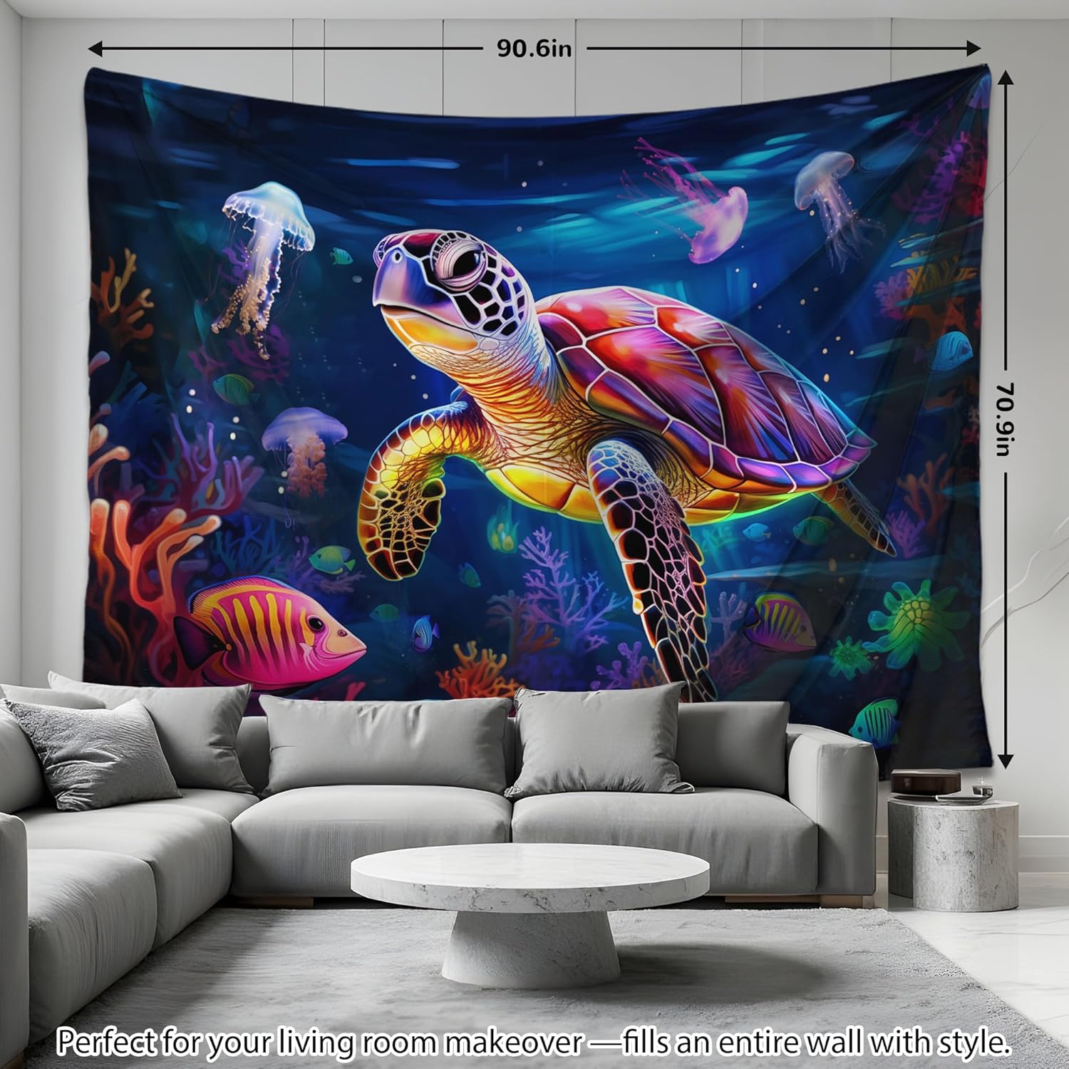QGHOT Turtle Tapestry, Blacklight Ocean Tapestry Wall Hanging Undersea Black Light Poster for Kids Glow in the Dark for Kids Bedroom Children Toddler Room Decor 90x70in