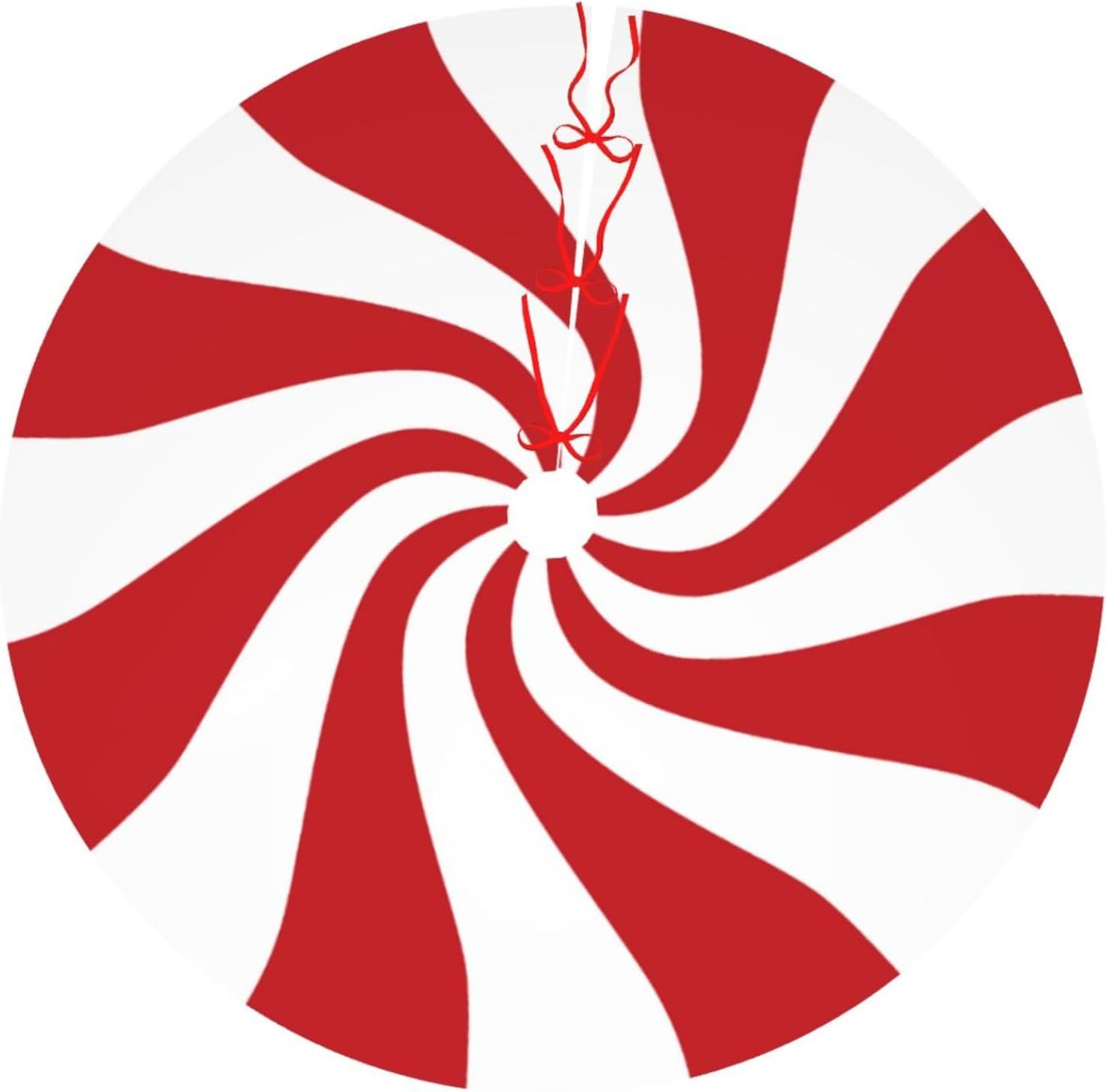 48" Large Christmas Tree Skirt, Red and White Peppermint Candy Round Pattern Tree Mat Base Cover for Xmas Festive Holiday Party Decoration Ornaments
