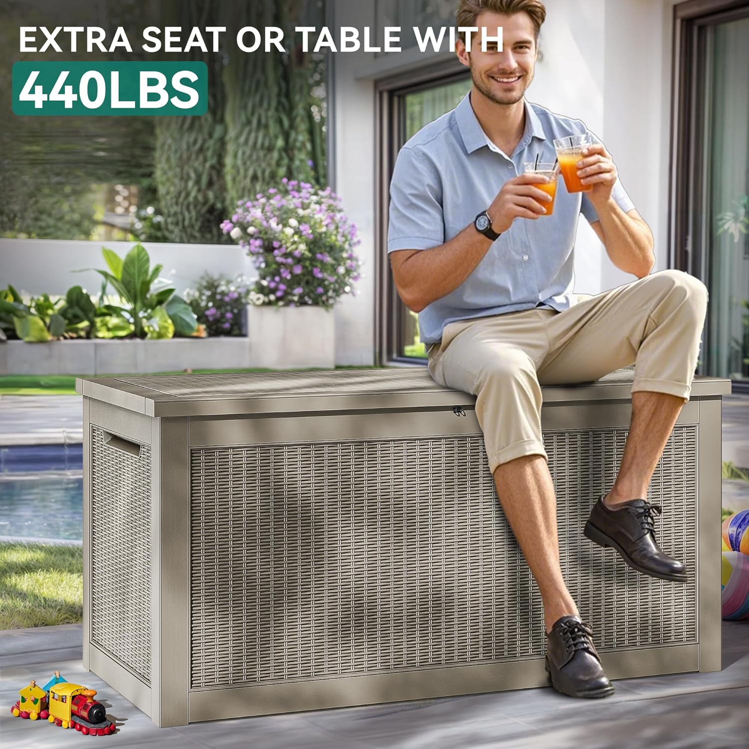 - Extra Seating or Table: The extra large outdoor storage deck box doubles as a comfortable bench seat with a weight capacity of 440pounds; Ideal for large patio gatherings or as a resting spot after yard work