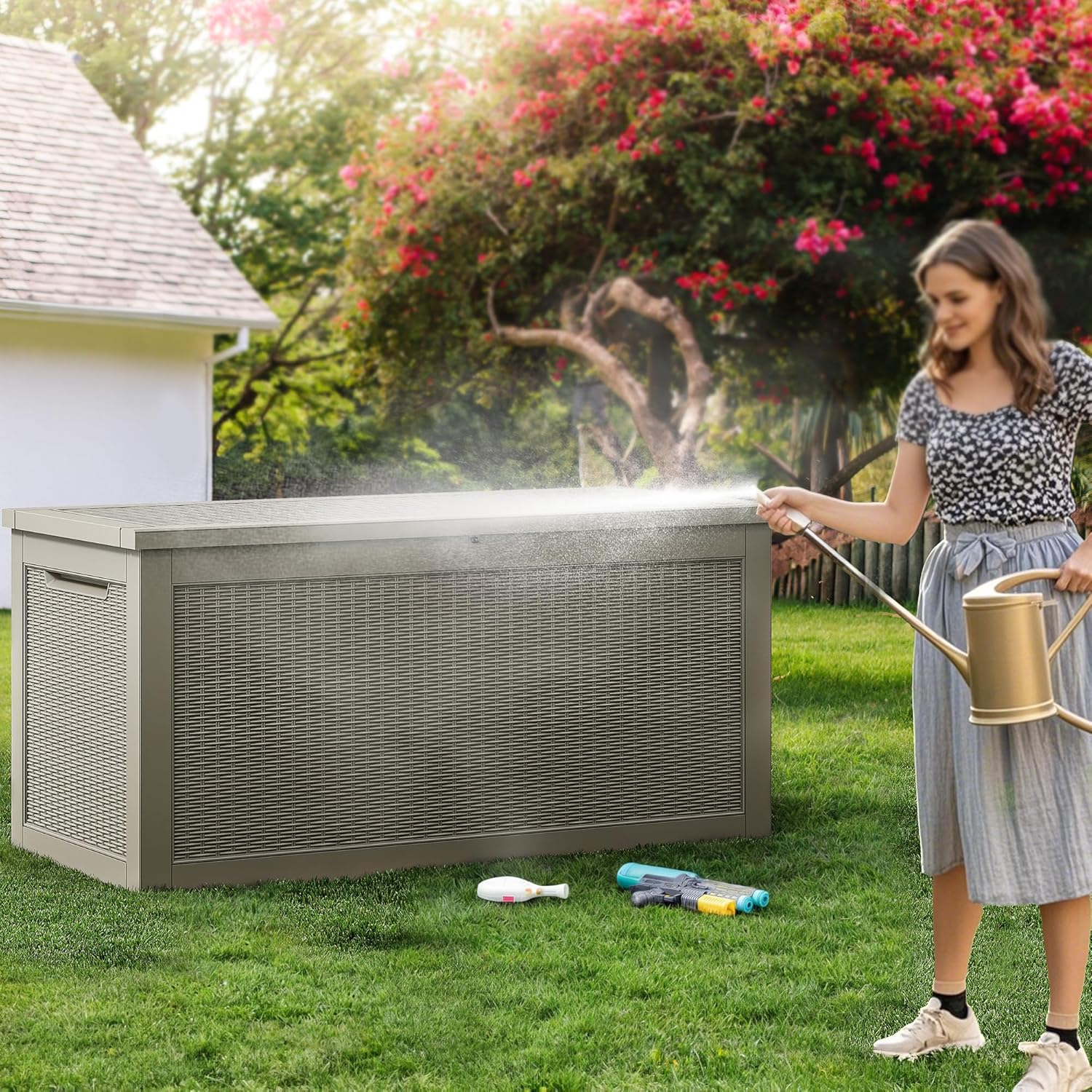 - Long-Lasting Durability: Crafted from weather-resistant resin, this pool storage box is waterproof and resists rust, water, UV rays, fading, and bending, making it ideal for long-term outdoor use; The stylish wicker texture seamlessly blends with your patio furniture