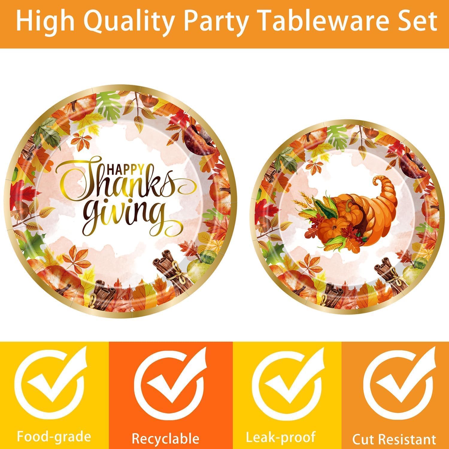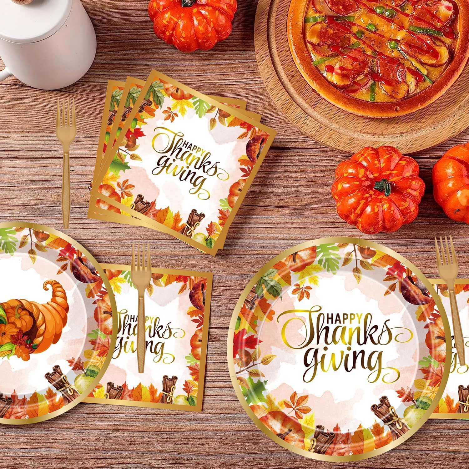 - SAVE TIME & ENJOY YOUR PARTY: Let's spend more time with our family or friends. Enjoy your party themes such as autumn, harvest, Thanksgiving with our Disposable tableware set. After the celebration, you can directly throw the paper plates, napkins and forks to enjoy more precious time with family and friends.