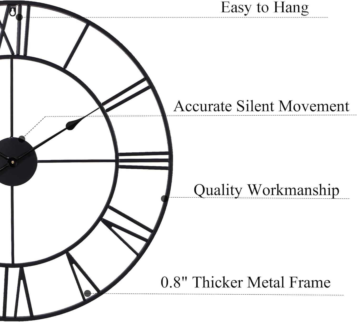 - ăExceptional CraftsmanshipăHandmade welding from high-quality 2cm thicker metal, this powder coated matt black 30 inch wall clock is built to last. Its sturdy build ensures longevity, making it a reliable oversized wall clock that enhances your living space for years to come