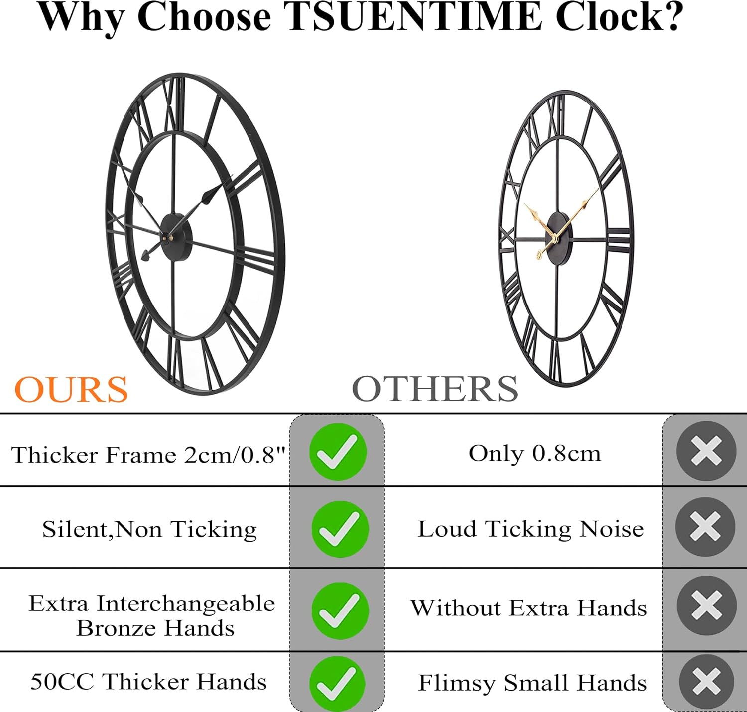 - Special Feature : Extra Plastic Cover for Movement Protection, Included Extra Interchangeable Bronze Hands, Large Display, Silent Clock Extra Plastic Cover for Movement Protection, Included Extra Interchangeable Bronze Hands, Large Display, Silent Clock
