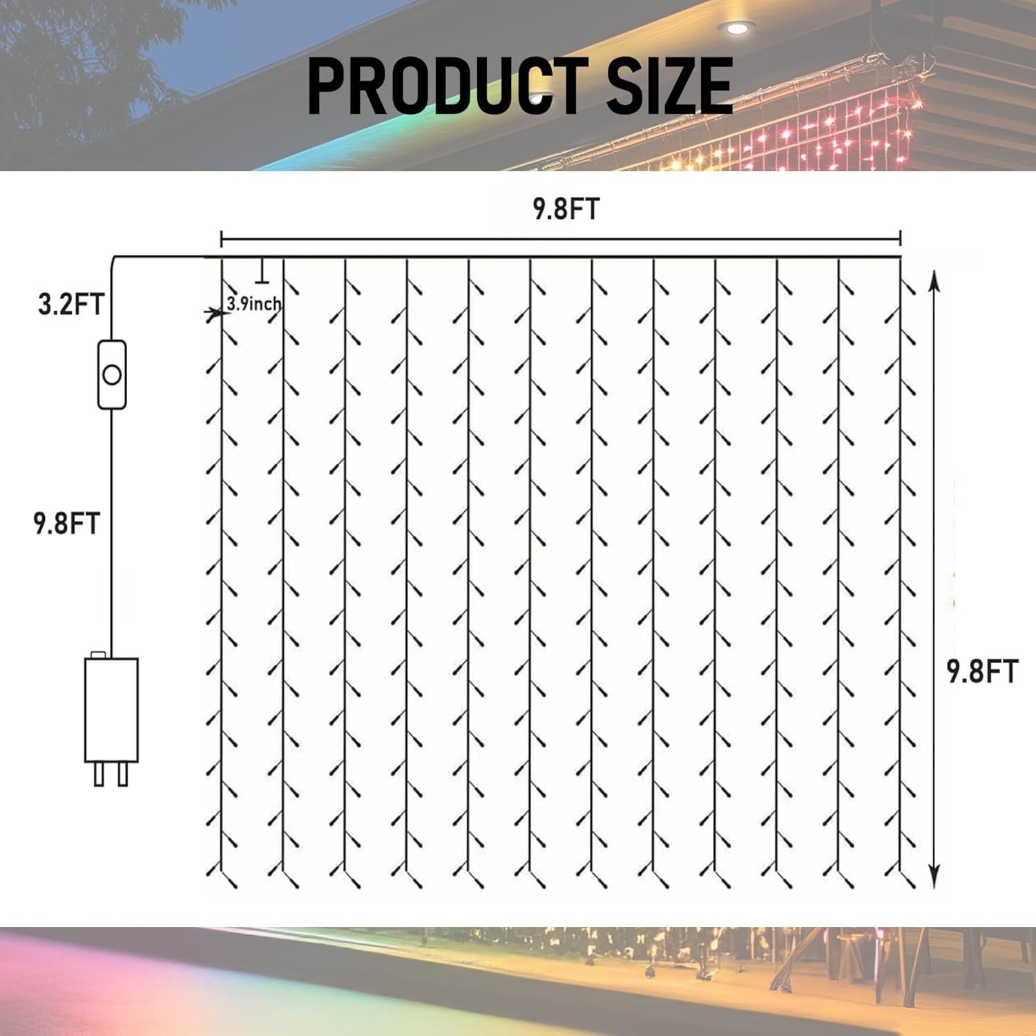 - 16 Million Colors & Multiple Scenes: Transform your holiday decorations with smart Christmas curtain lights that offer an incredible 16 million colors and various modes. The size is 9.8 FT X 9.8 FT, the lead length is 13 FT, and the horizontal distance between each lamp bead is 3.9 inch. Perfect for enhancing the atmosphere during Christmas, Halloween, 4 of July, Easter, Valentine's Day, St. Patrick's Day, Thanksgiving, New Year, weddings, and birthdays.