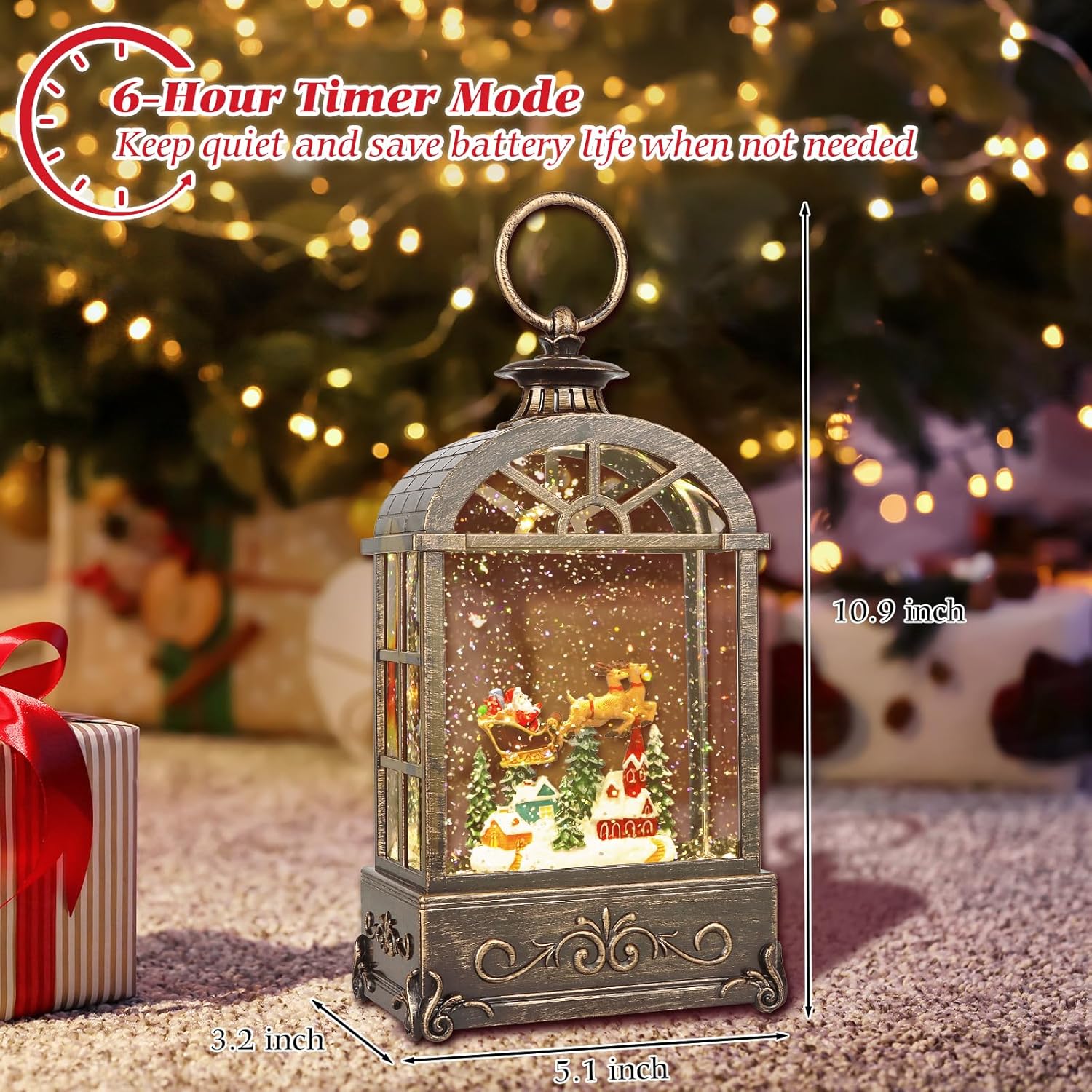 Christmas Snow Globes Lantern,Musical Snow Globes,Christmas Decorations Indoor for Home,Battery Or USB Powered,with 6 Hour Timer,Christmas Lantern for Festival Decoration,Reindeer Vehicle