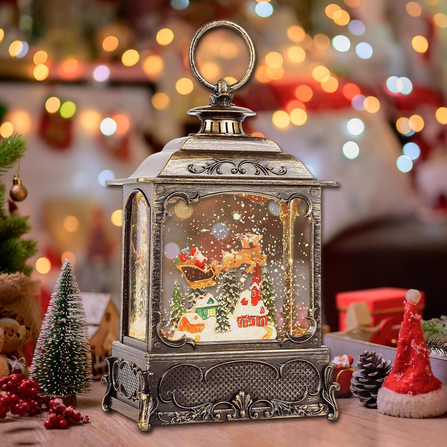 - USB & Battery Powered:Christmas Snow Globe Lantern that can be powered by USB cable (included) or 3 AA batteries (not included). The rotating water glitter lantern creates a festive atmosphere with snowy scenes and warm lights.