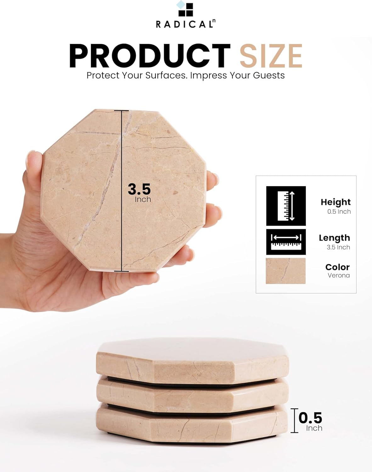 Radicaln Marble Coasters Star 3.5" Inches Verona Handmade Drink Coasters Set of 6 for Coffee Table, Car Cup Holders & Bar Use, Ideal Coffee Table Decor