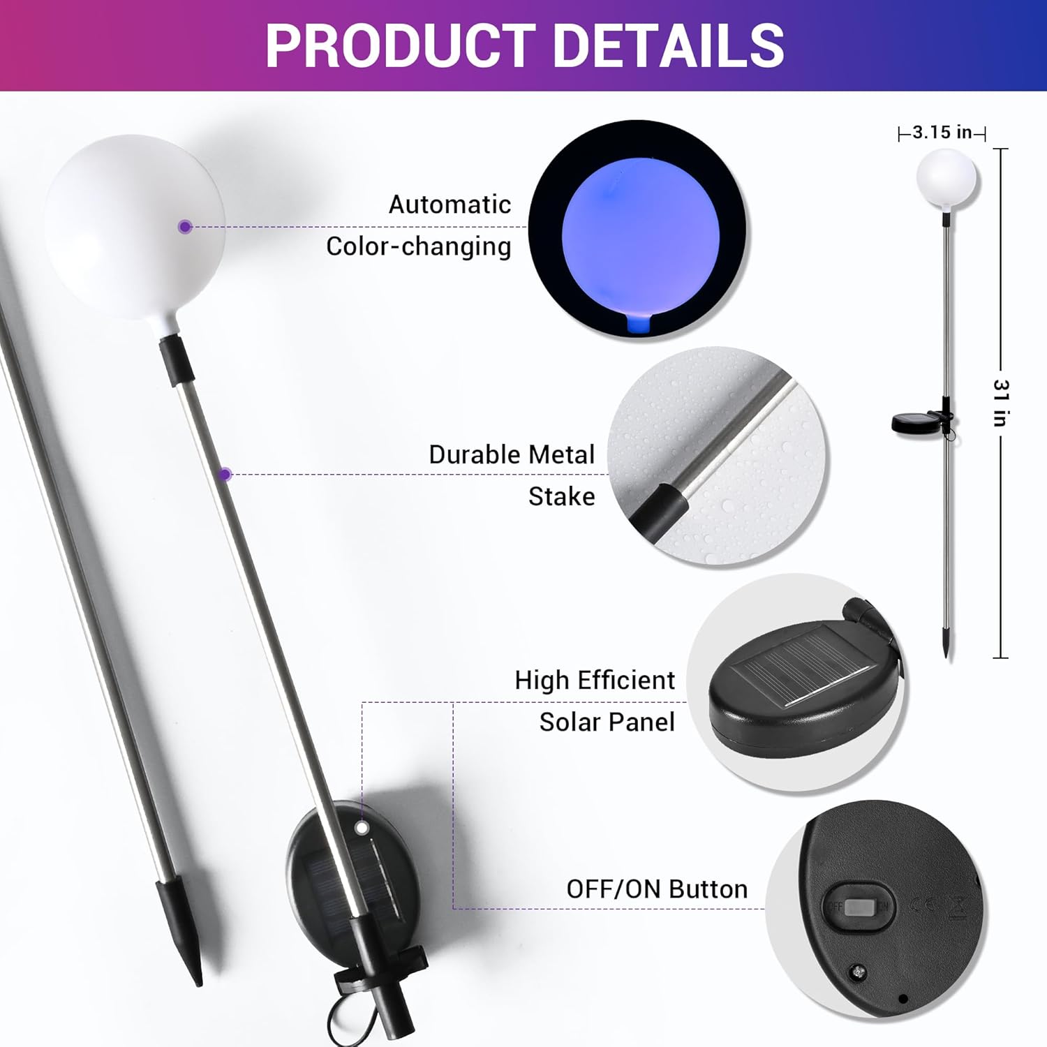 - 【Color Changing Landscape Lighting】Solar lights color changing with ball, very beautiful, perfect to decorate your lawn, garden or patio. It is also good choice to use them as decorations