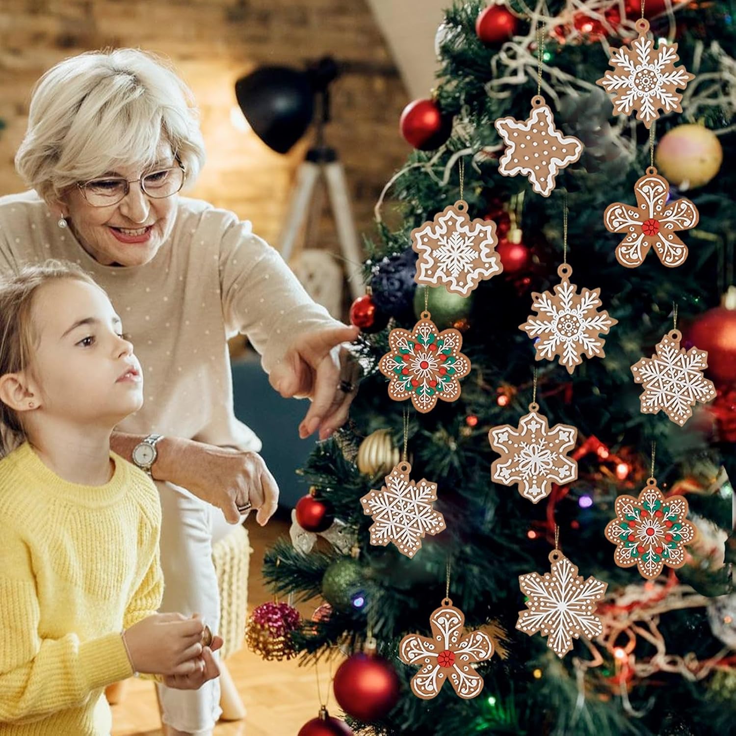 - Festive Gingerbread Snowflake Charm: This Christmas gingerbread snowflake ornaments set brings the perfect combination of holiday charm and rustic elegance. The gingerbread christmas ornaments are thoughtfully designed with intricate snowflake patterns and the warm tones of gingerbread, evoking a nostalgic, vintage feel. Ideal for those looking to create a cozy and inviting holiday atmosphere