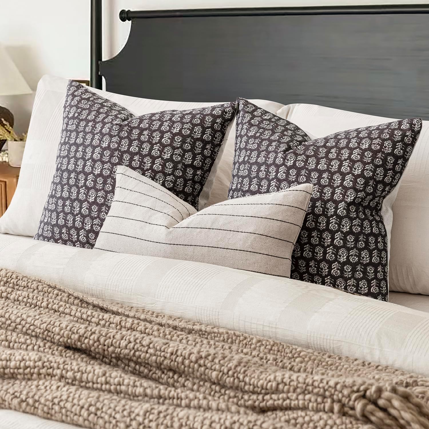 Foindtower Set of 2 Decorative Vintage Floral Print Throw Pillow Covers Neutral Modern Farmhouse Cushion Covers Boho Home Decor for Sofa Couch Chair Bedroom Living Room Outdoor,20×20 Inch,Black