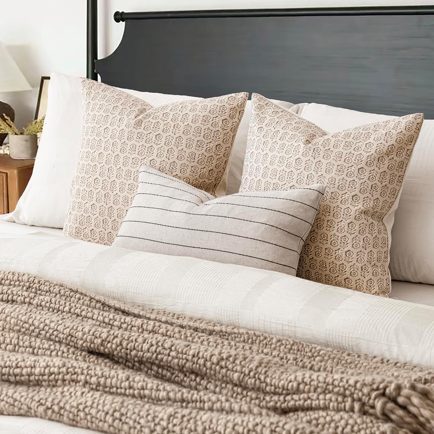 Foindtower Set of 2 Decorative Neutral Floral Print Throw Pillow Covers Vintage Accent Farmhouse Cushion Covers Boho Home Decor for Sofa Chair Couch Bedroom Living Room Outdoor,18×18 Inch,Ivory Beige