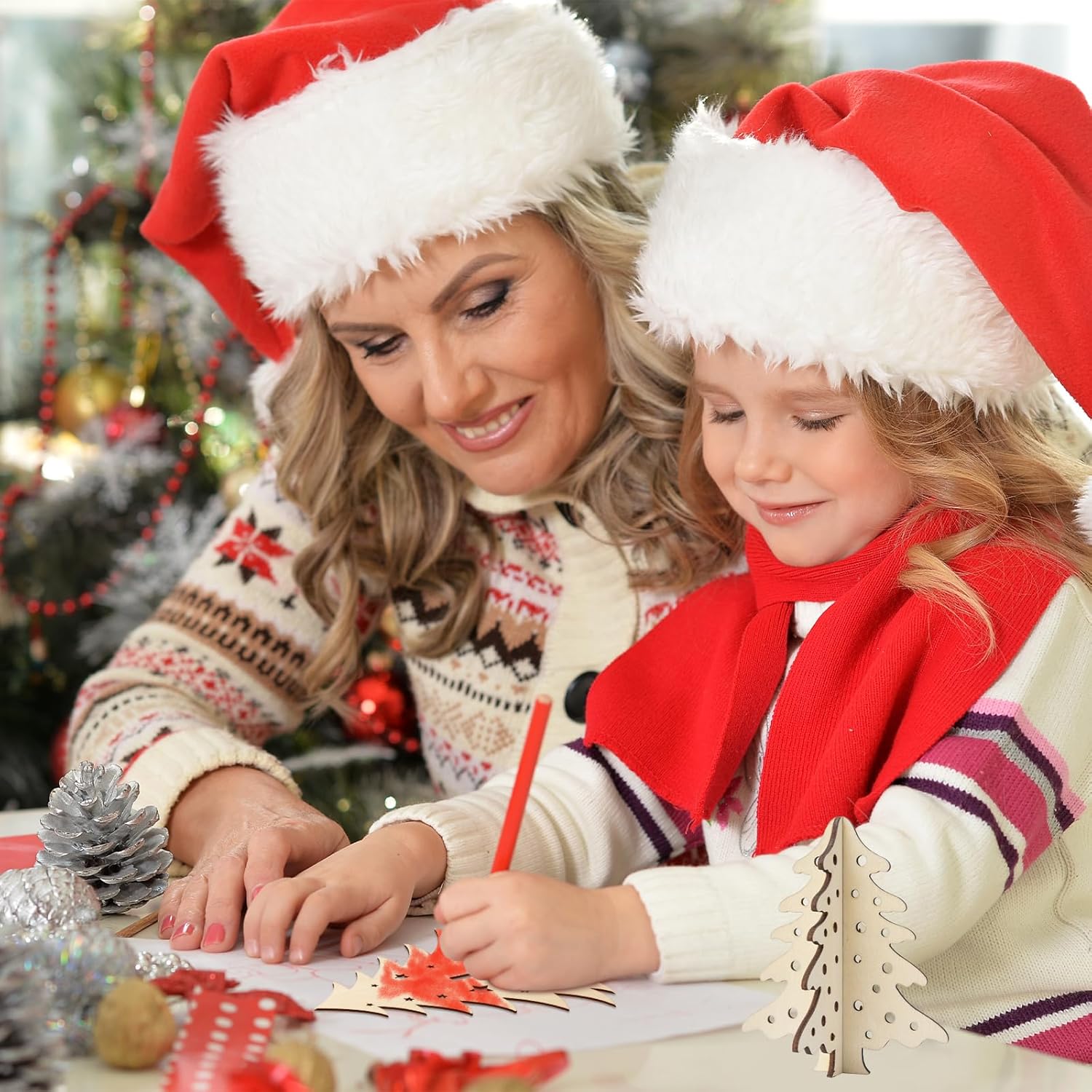 COCHIE DIY 3D Christmas Tree Wood Crafts to Paint for Kids Adults, Paintable Unfinished Wooden Slices for Craft, Xmas Trees Cutouts Ornaments for Painting Decorations (24 PCS)