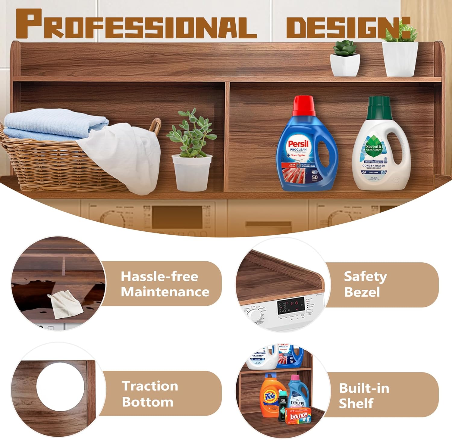 Royxen 2-Tier Washer Dryer Countertop,19.5" H Wood Washer and Dryer Topper with Shelf,Laundry Countertop Over Washer and Dryer, Universal Fit for Laundry Room Organization (Walunt, 54" WX27.5 D)