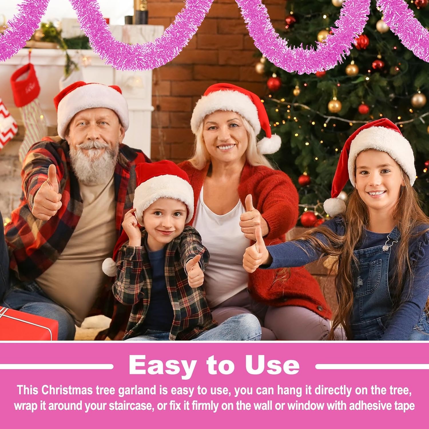 - Easy to Hang: Christmas tinsel garland include a soft, bendable wire inside, and easy to shape as different looks. You can also trim it into different sizes, twist them into various shapes as you like, or with the tape stick it on the wall, window, table, door, rail or any place you like, show the christmas glamour to make your party decoration for the home fun