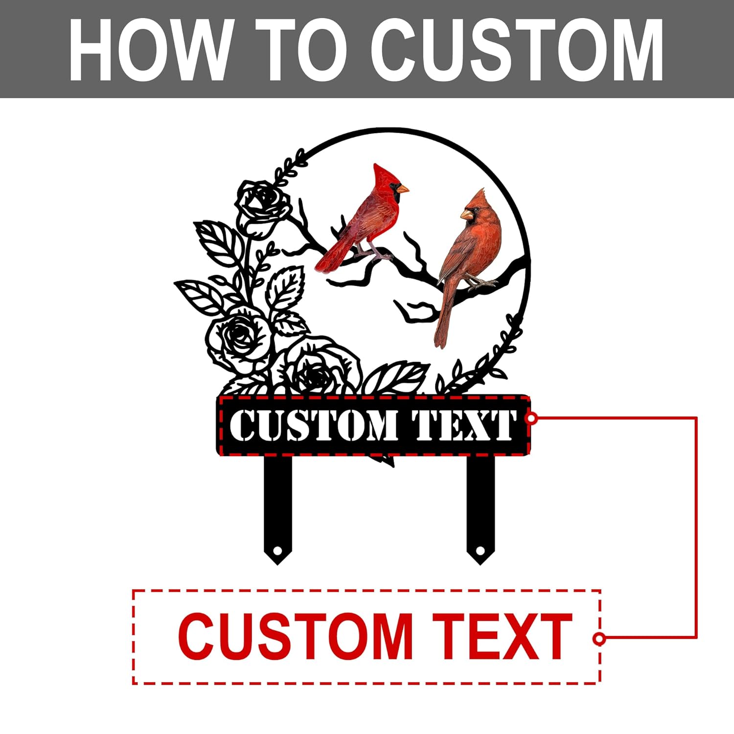 - Personalized Stake: Customize with a name or other wording to give to your family, friends or use to decorate your own yard. Cardinal stake look great outside, in the garden, on the patio, adding color to your outdoor space.