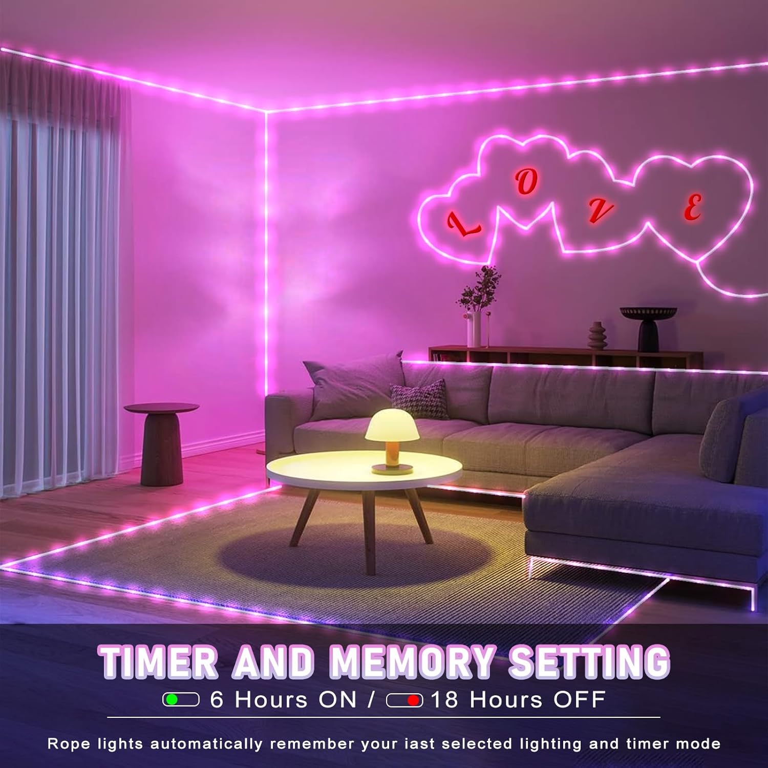 - 【Connectable Rope Lights】- Our upgraded led rope lights feature has 66ft lighting length, 6.6ft lead wire, total 72.6ft length. And the spacing between each LED bead is 4 inches, the light is bright but not harsh. The rope lights indoor can be connected end to end up to 5 sets to illuminate your home and create a warm and romantic atmosphere!