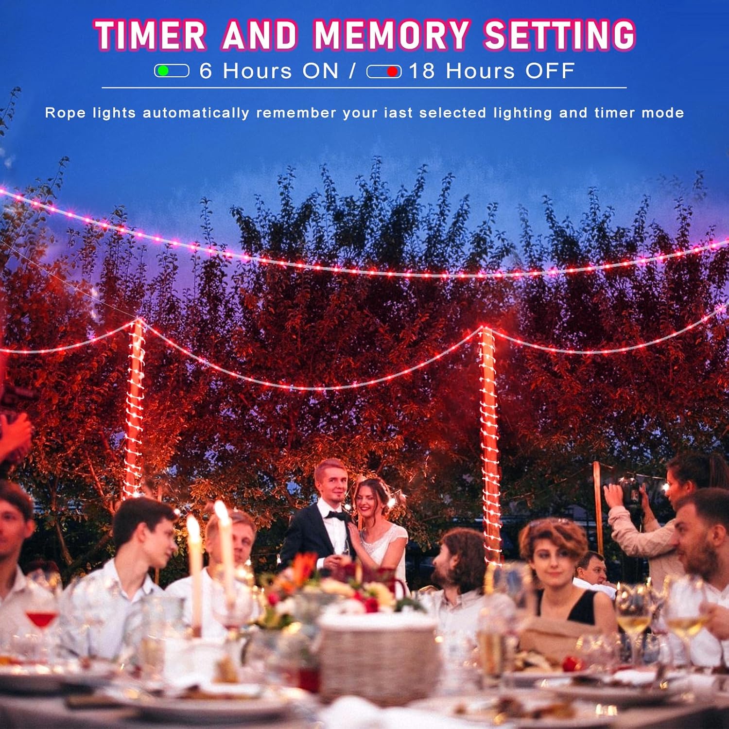 - 【Waterproof Outdoor String Lights】- IP65 Waterproof design, they are suitable for all weather use, remaining bright and sparkling even during strong rain and windy days. The outdoor rope lights is ideal for year-round outdoor decor and can illuminate gazebos, canopy, corridors, gardens, and patios. But please note the plug is not waterproof.