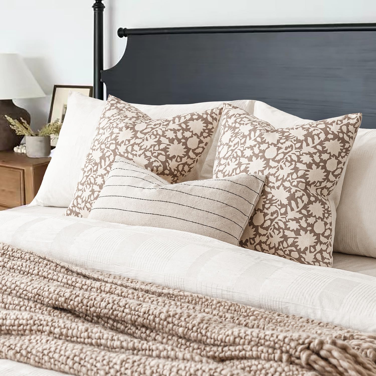 Foindtower Set of 2 Decorative Neutral Floral Lumbar Throw Pillow Covers Accent Farmhouse Cushion Covers Boho Vintage Pillowcase for Couch Sofa Bedroom Living Room Home Decor Outdoor,12×20 Inch,Tan