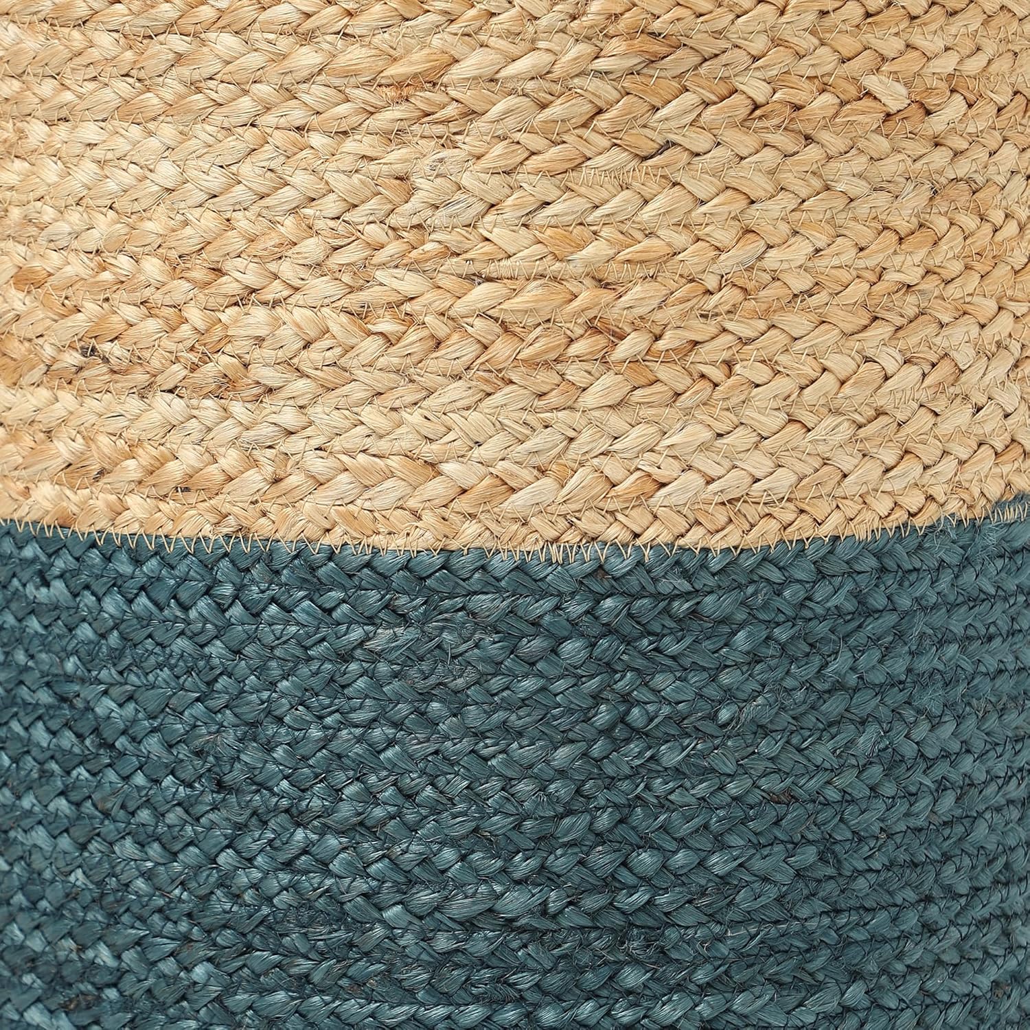 REDEARTH · Cylindrical Pouf Foot Stool Ottoman - Jute Braided Pouffe Poof Accent Sitting Footrest for Living Room, Bedroom, Nursery, Patio, Lounge (Natural Teal, 14.5"x14.5"x16")
