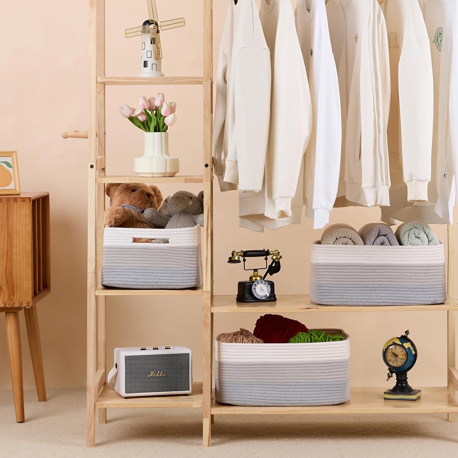 Large Storage Baskets for Shelves, Closet Organizers Bins for Clothes Blanket Towels, Baby Nursery, Toy Baskets Box, Woven Rope Baskets, 17 x 13 x 7.5”, 3 Packs Gradient Grey